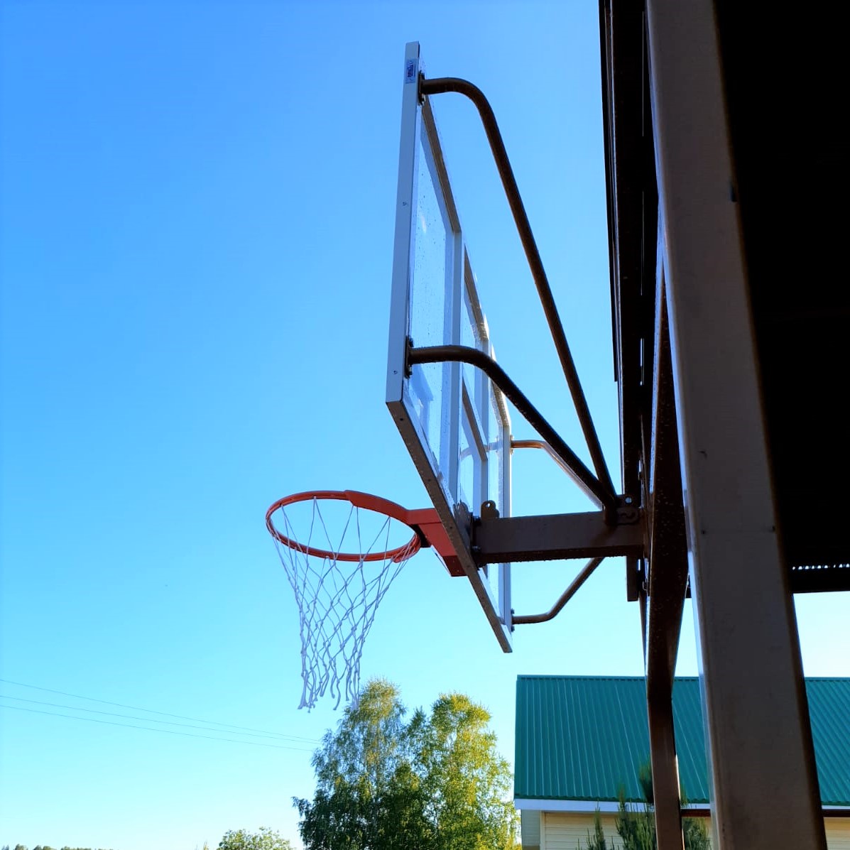Баскетбольная стойка уличная одноопорная для игрового щита 1050х1800 мм вынос 1200 мм ZAVODSPORTA