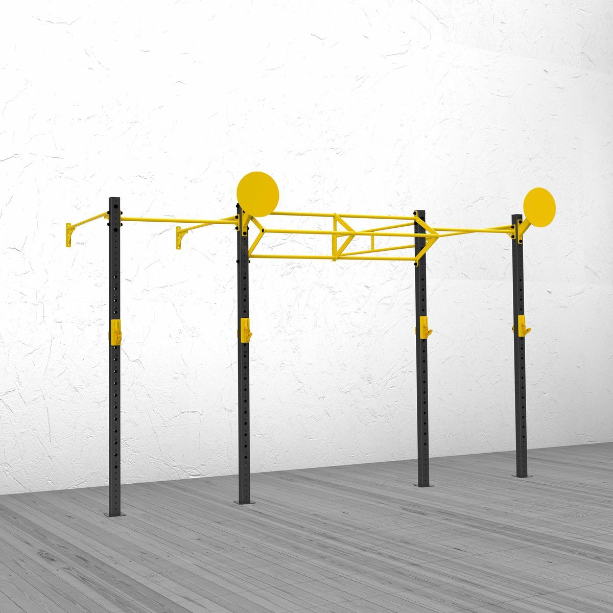 А0311 Функциональная рама 4000-1800.Функциональная рама для кроссфита – неотъемлемый атрибут любого crossfit-зала, универсальное решение необходимое для проведения комплексных тренировок и выполнения силовых упражнений.Основные элементы рамы выполнены из профильной трубы 80*80*3 мм,трубы d32 мм и листов металла 8 и 10 мм. Состав:Стойка перфорированная 80х80, ZSO-2680 -4 шт Перекладина одинарная УСИЛЕННАЯ d32, ZSO-1800- 3 шт Перекладина двойная d32, ZSO-1800 -1 шт Перекладина одинарная d32, ZSO-1100-2 шт Перекладина треугольная d32/32/32, ZSO-1800-1 шт Мишень для медбола, ZSO -2 шт Крюки для штанги, ZSO, (пара) — 2 шт