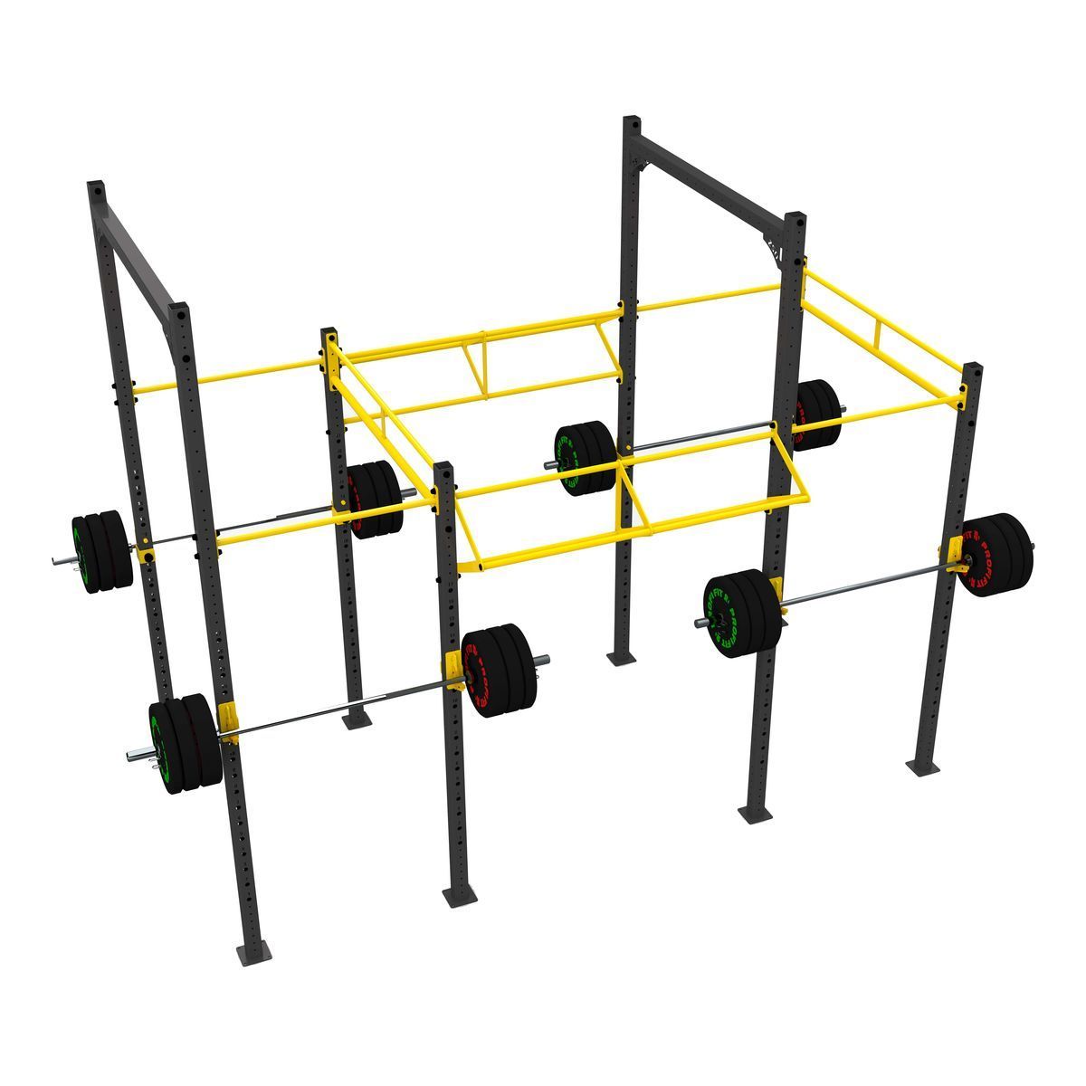 А0328 Функциональная рама 4000-1800.Функциональная рама для кроссфита – неотъемлемый атрибут любого crossfit-зала, универсальное решение необходимое для проведения комплексных тренировок и выполнения силовых упражнений.Основные элементы рамы выполнены из профильной трубы 80*80*3 мм,трубы d32 мм и листов металла 8 и 10 мм. Состав:Стойка перфорированная 80х80, ZSO-2680- 4 шт Стойка перфорированная 80х80, ZSO-3680 — 4 шт Балка перфорированная УСИЛЕННАЯ 80х80, ZSO-1800-2 шт Перекладина двойная d32, ZSO-1800-2 шт Перекладина одинарная d32, ZSO-1100 — 4 шт Перекладина треугольная d32/32/32, ZSO-1800-2 шт Крюки для штанги, ZSO, (пара)-4 шт