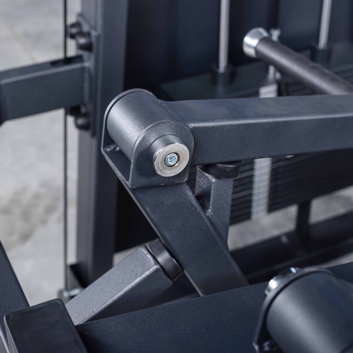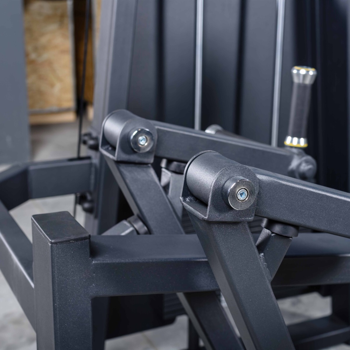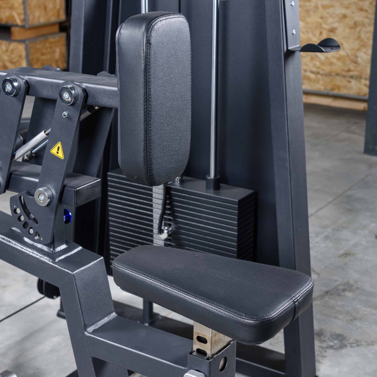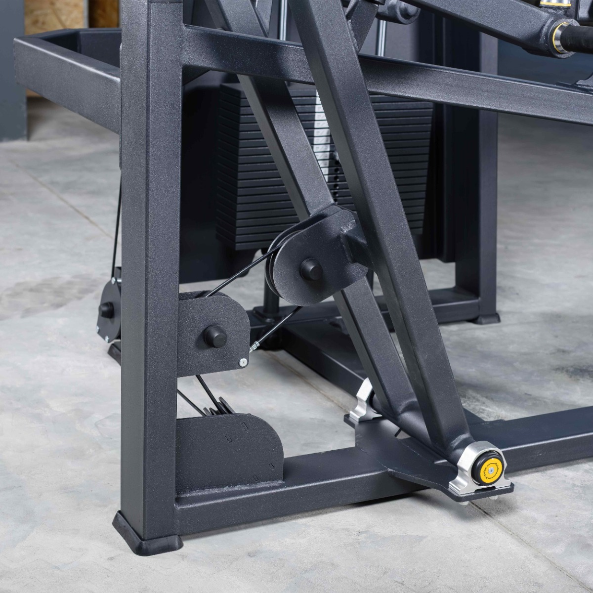 Система нагрузки – тросовая, с весовым стеком 100 кг. Весовой стек выполнен из стальных плит с порошковым покрытием.