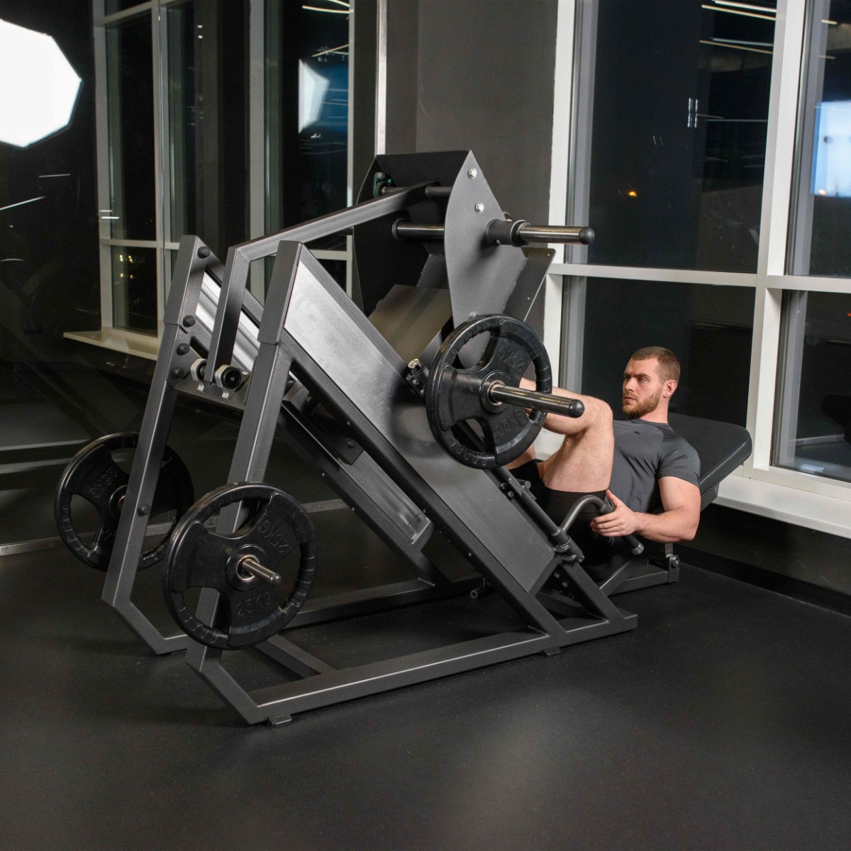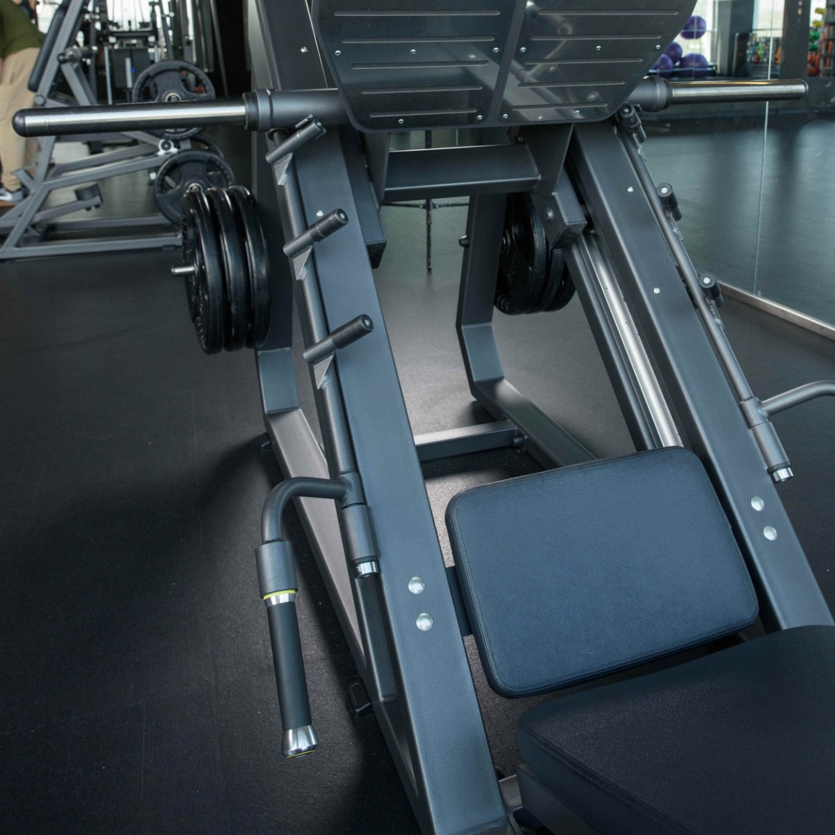 Профессиональный тренажёр для коммерческого использования A3056-AL Жим ногами под углом 45° предназначен для эффективной проработки мышц нижней части тела – квадрицепсов, бицепсов бедра, ягодичных и приводящих мышц. Конструкция обеспечивает безопасное выполнение упражнения без осевой нагрузки на позвоночник и подходит для работы с большими весами.