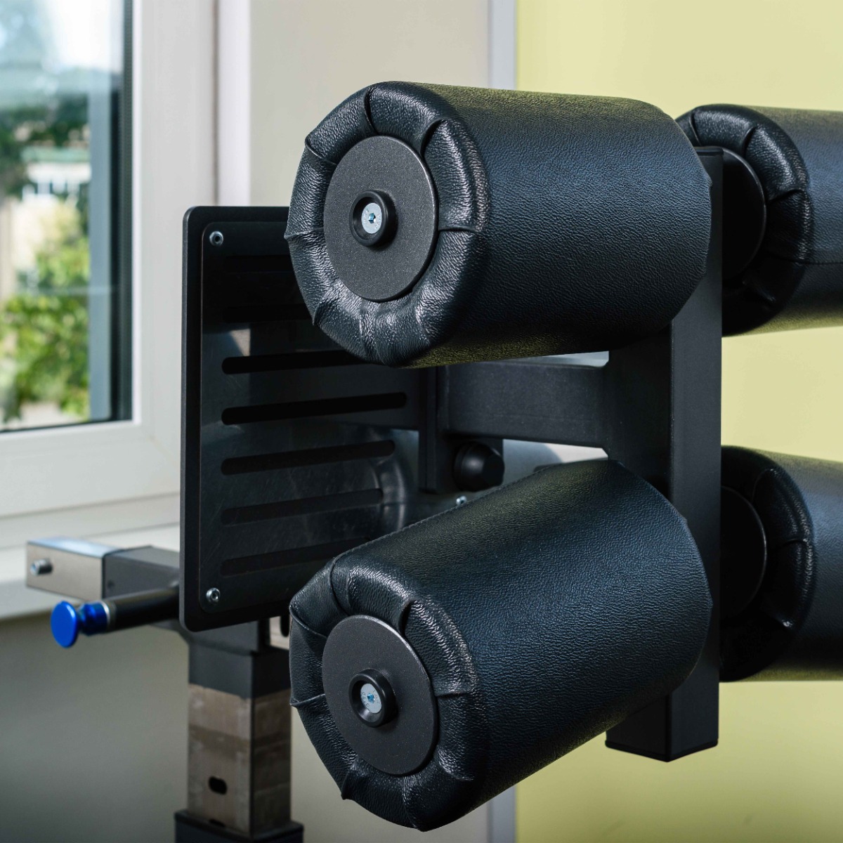 Две пары горизонтальных валиков обеспечивают надёжную фиксацию ног. Верхние валики располагаются горизонтально, нижние – под углом, что позволяет комфортно расположить ноги между ними.