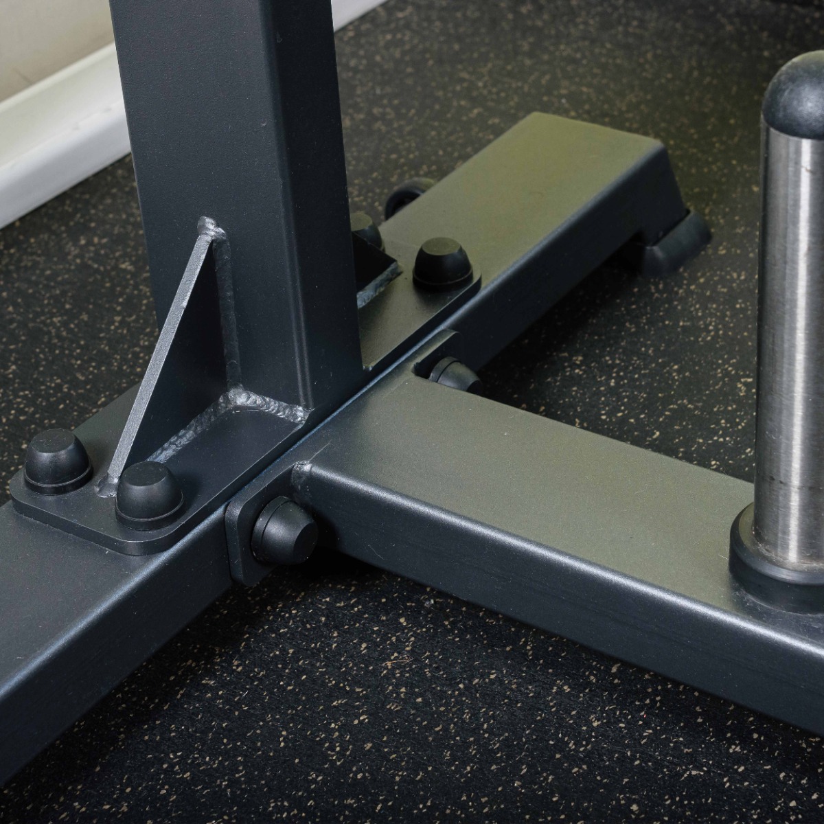 На основании тренажёра установлен один хромированный накопитель для хранения дисков с посадочным диаметром 50 мм. Накопитель выполнен из толстостенной стальной трубы и оснащён пластиковой заглушкой и резиновым демпфером.