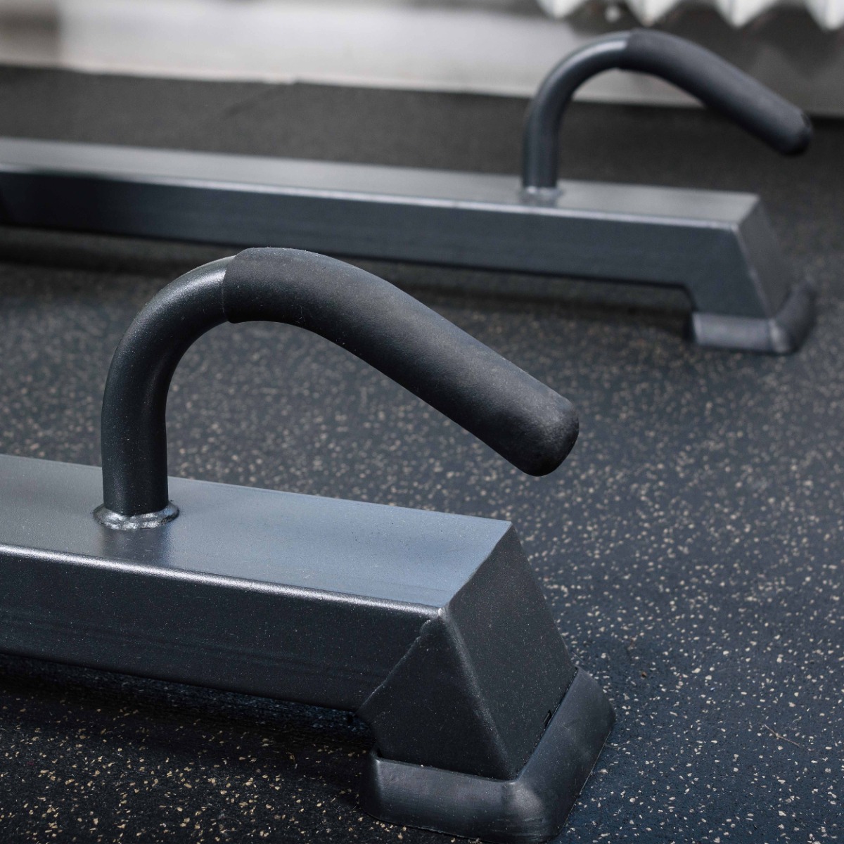 Рукояти расположены вдоль рамы в горизонтальной плоскости. Выполнены из металлического прутка с прорезиненным покрытием и алюминиевыми декоративными заглушками с болтовой фиксацией.