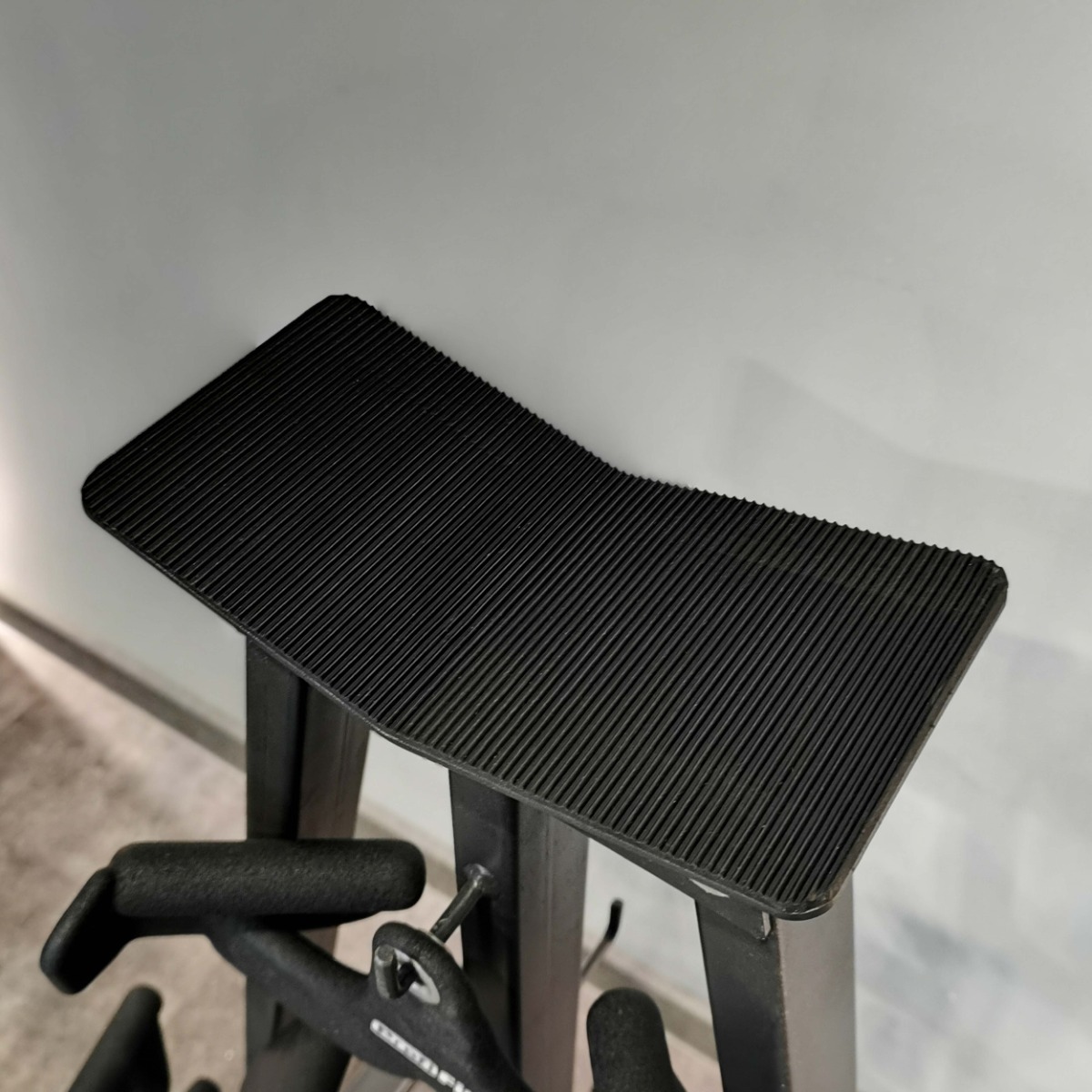 Верхняя часть стойки (подставка для хранения инвентаря) размером 220×110 мм изготовлена из листового металла толщиной 3 мм с резиновым рифленым ковриком для предотвращения скатывания размещаемых предметов.