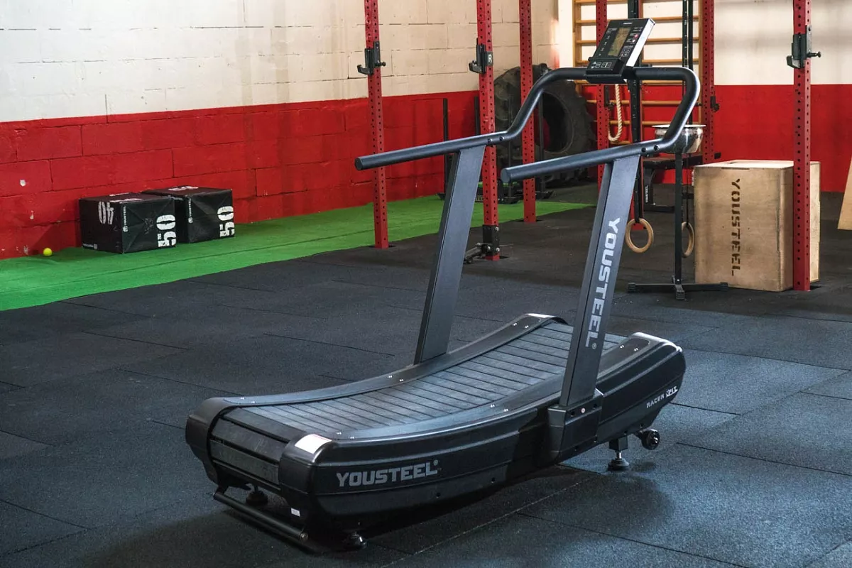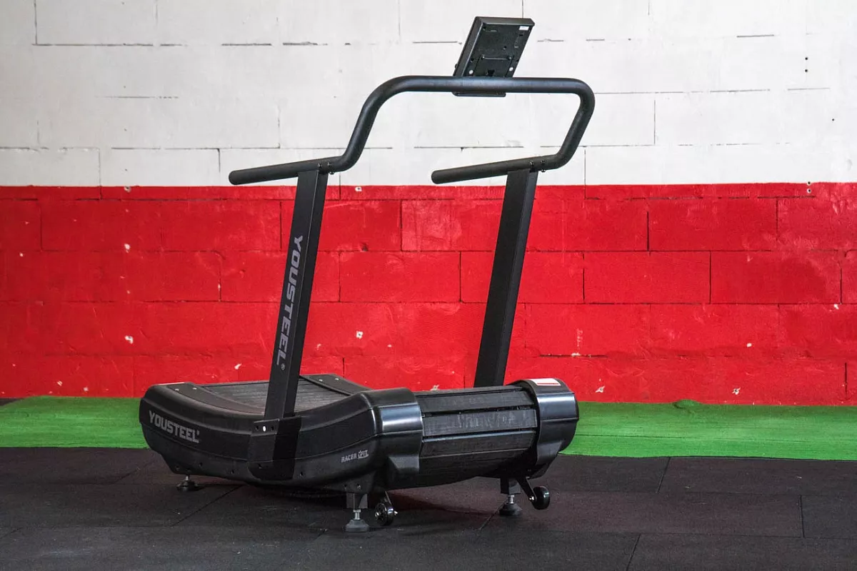 Механическая беговая дорожка YOUSTEEL RUNNER — высококлассная беговая дорожка, задействующая только силу атлета без вспомогательных средств, она приходит в движение только за счет движения самого атлета. В дорожке нет двигателя и она не требует подключения к электричеству. Габаритные размеры 1665х905х1600мм, ширина полотна для бега 433мм. Вес изделия 121кг.