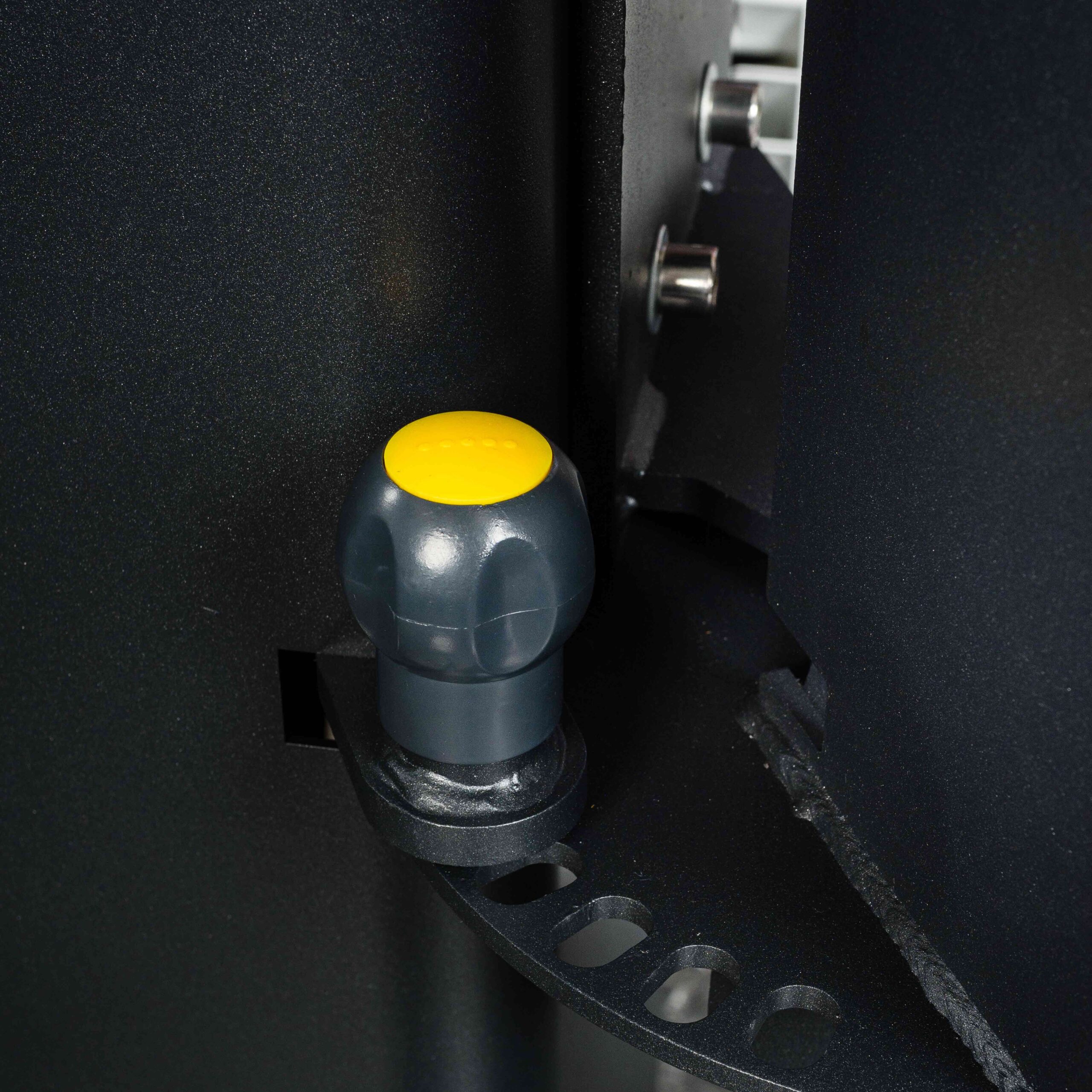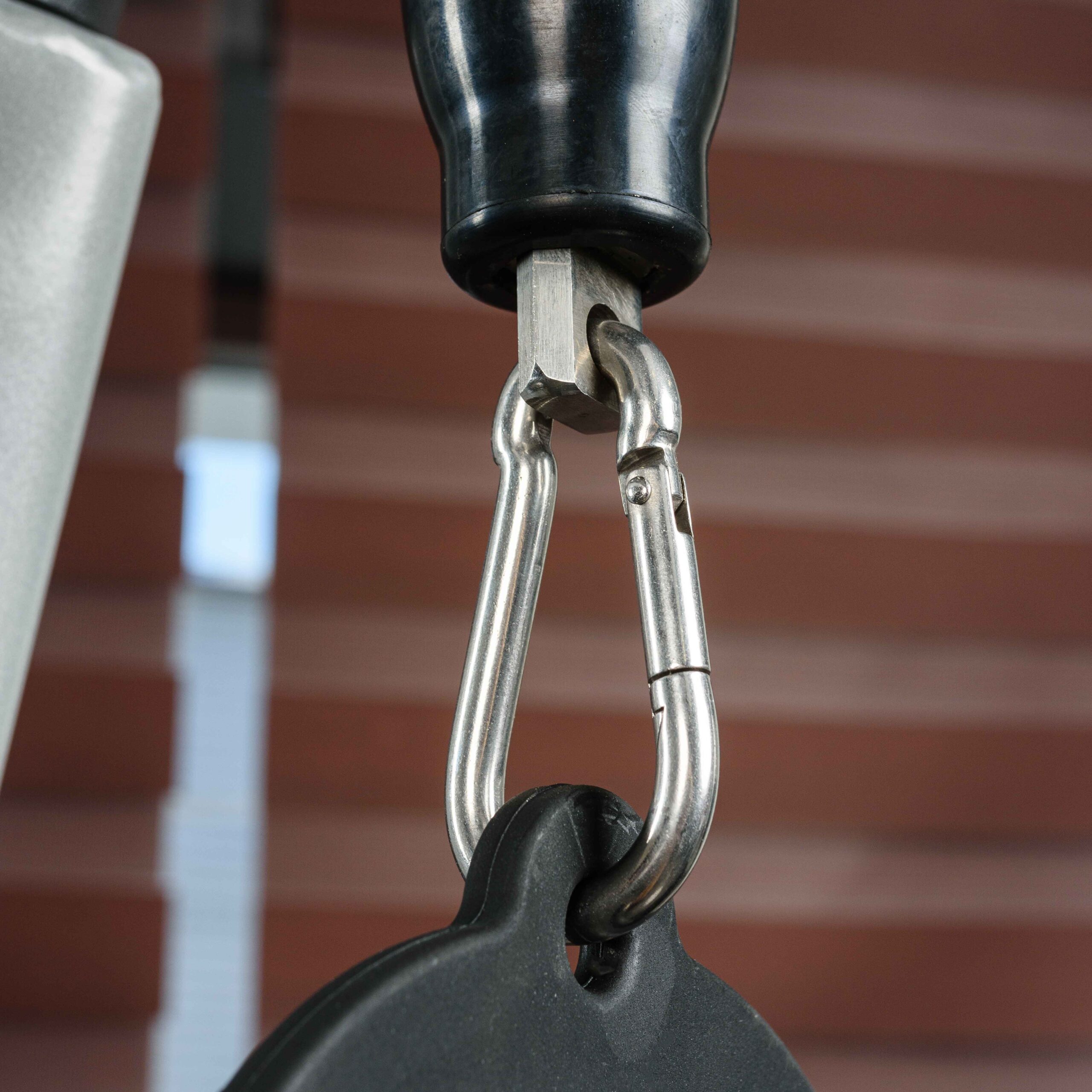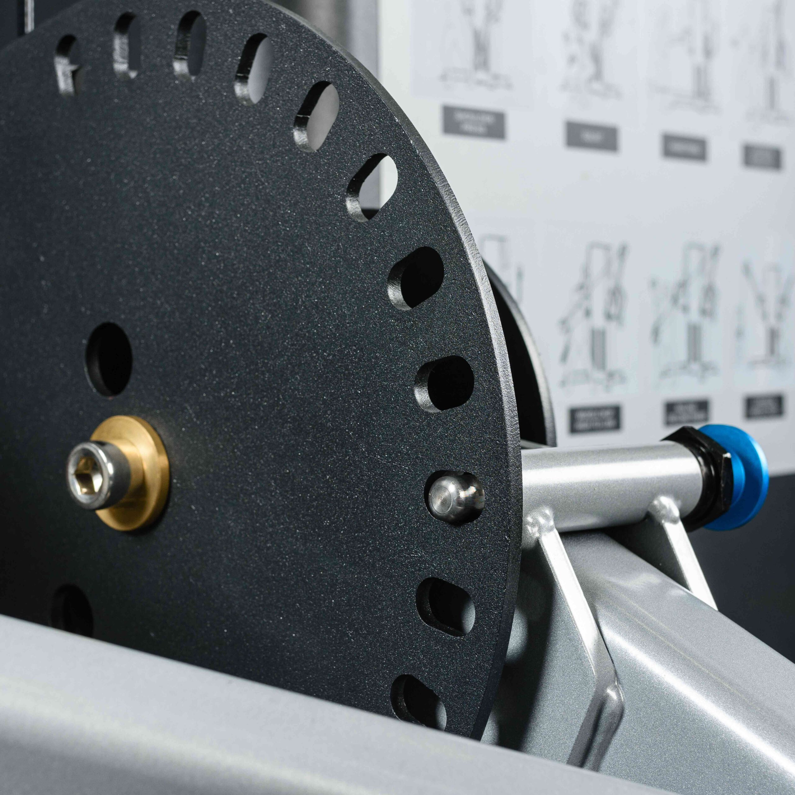 Пользователь ощущает грузоподъемность стека: 2 x 105 кг на каждой рукояти через два независимых и закрытых весовых стека.