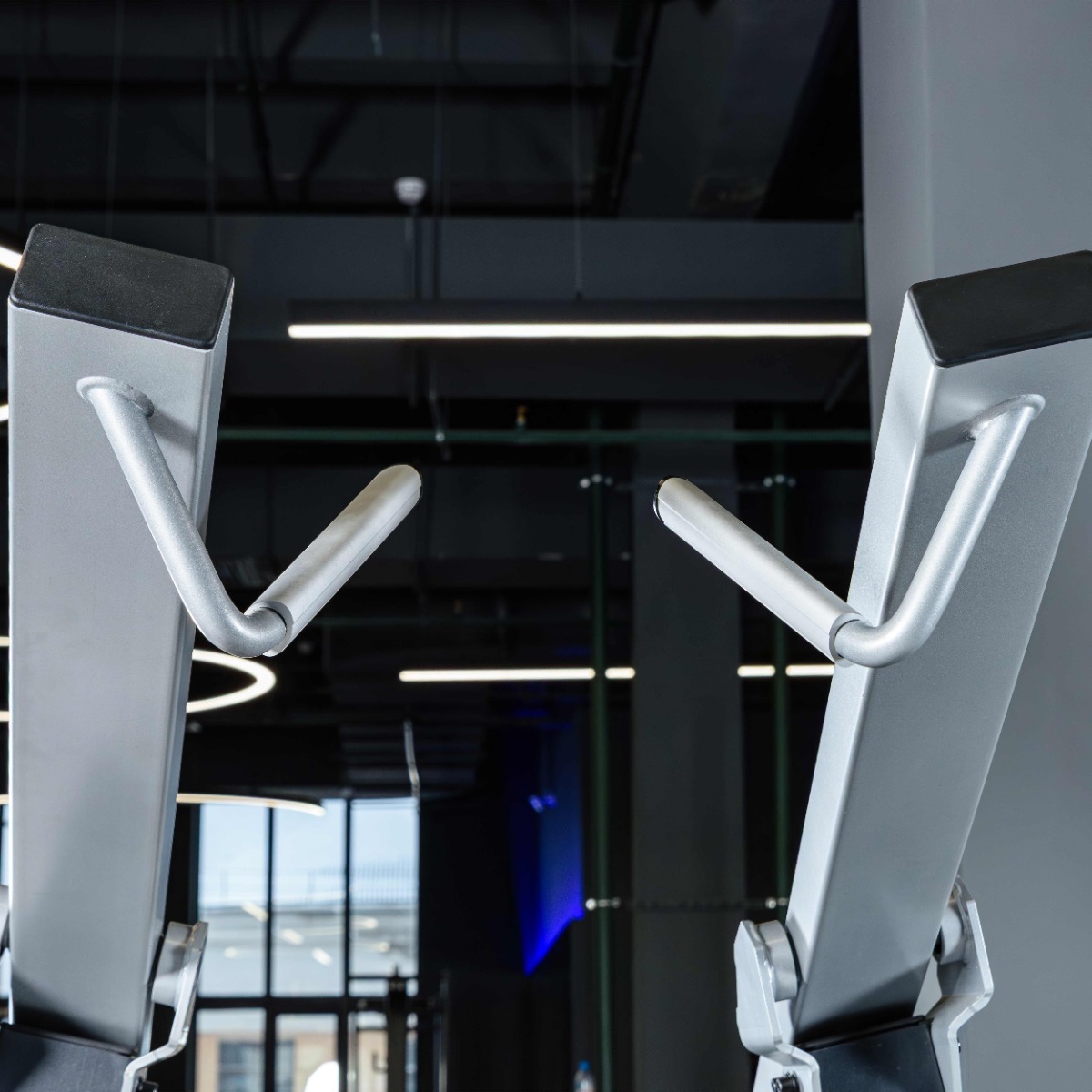 Накопители для хранения и работы со свободными весами оборудованы кольцами из плотной резины для предотвращения соприкосновения дисков с рамой тренажера.