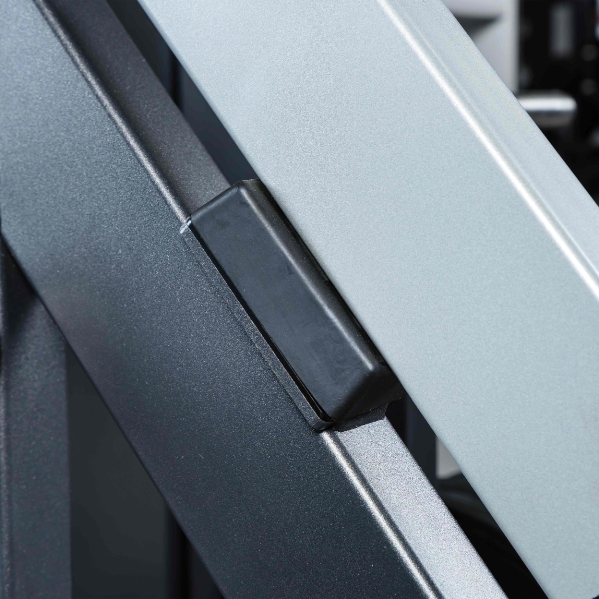 Тренажер имеет четыре опорные ножки с закрепленными пластиковыми накладками для устойчивого положение и безопасного подхода к тренажеру.