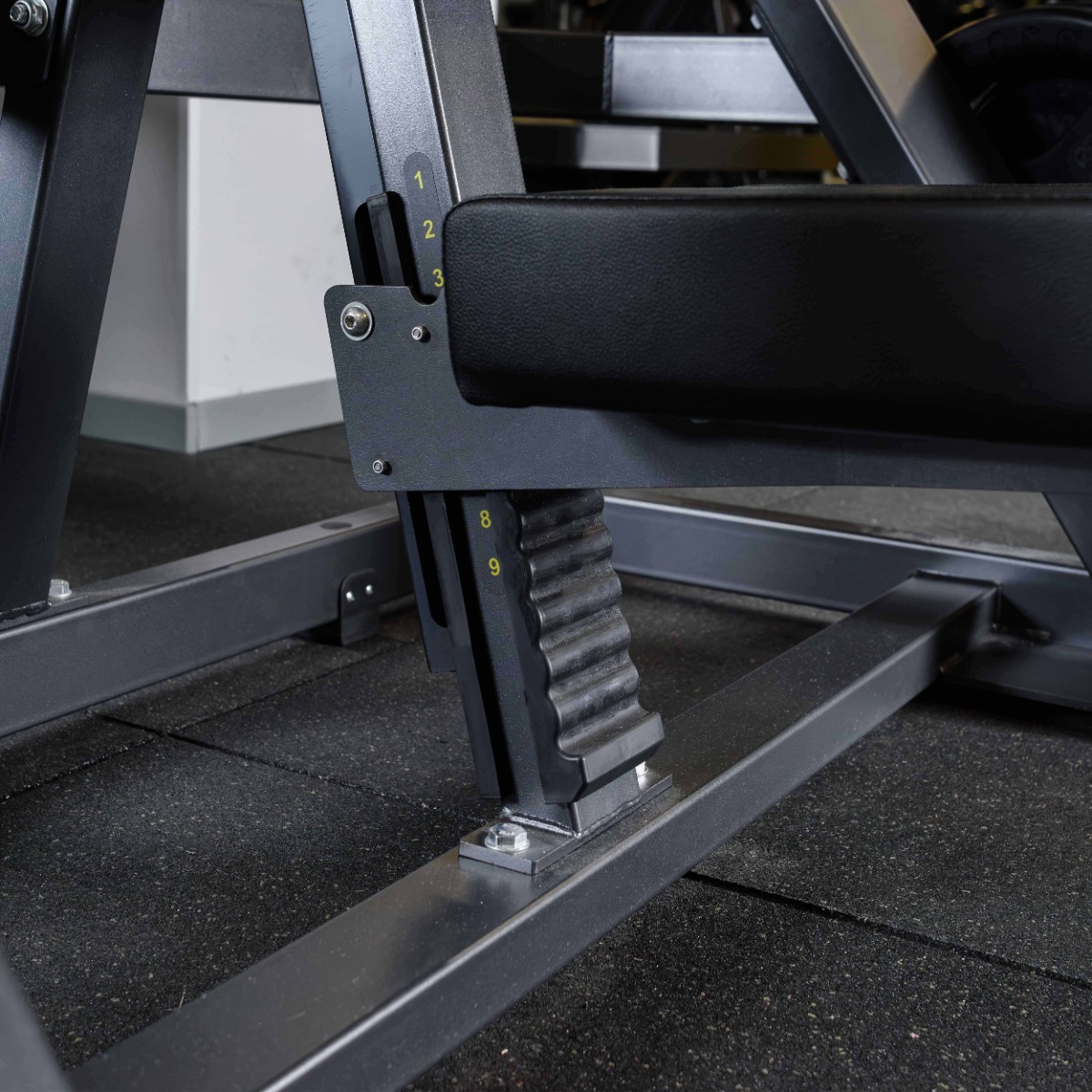 Опорные элементы тренажера выполнены из пластика, оснащены механизмом регулировки по высоте для компенсации неровностей пола и обеспечивают устойчивость установки с защитой напольного покрытия от повреждений.