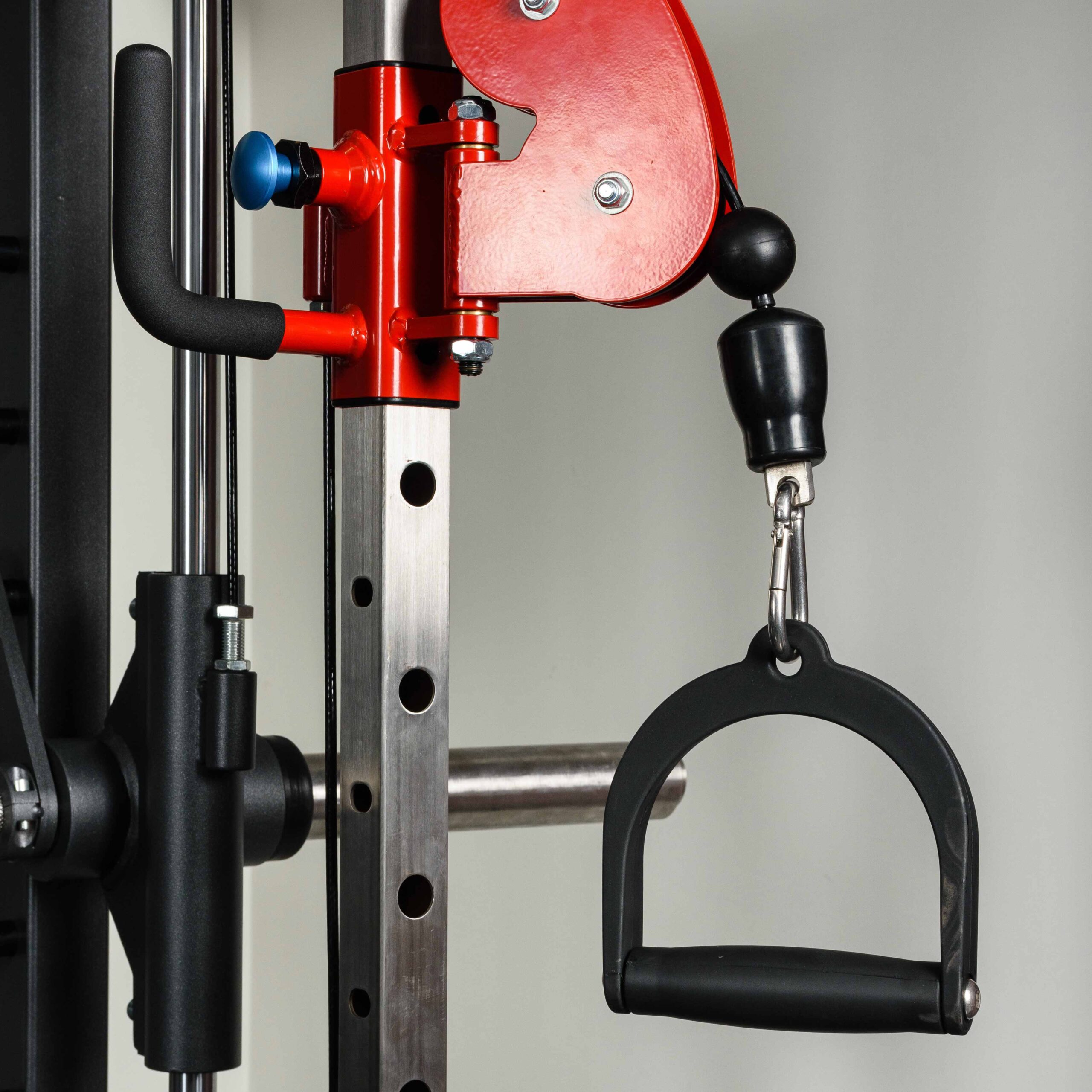 Тренажер имеет 2 грузоблока, каждый из которых состоит из 16 плит по 4 кг. 4 направляющих для грузоблоков выполнены из нержавеющей стали диаметром 20 мм.