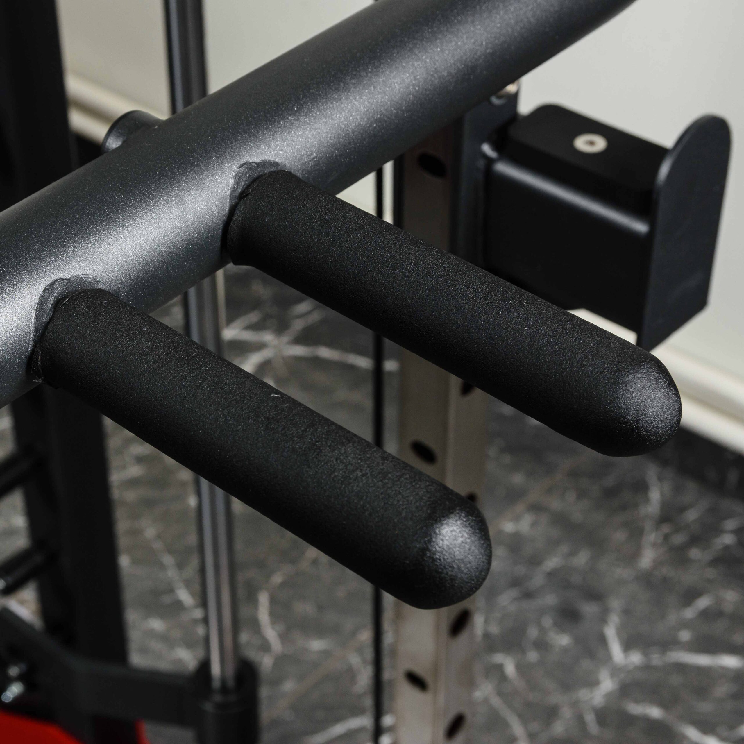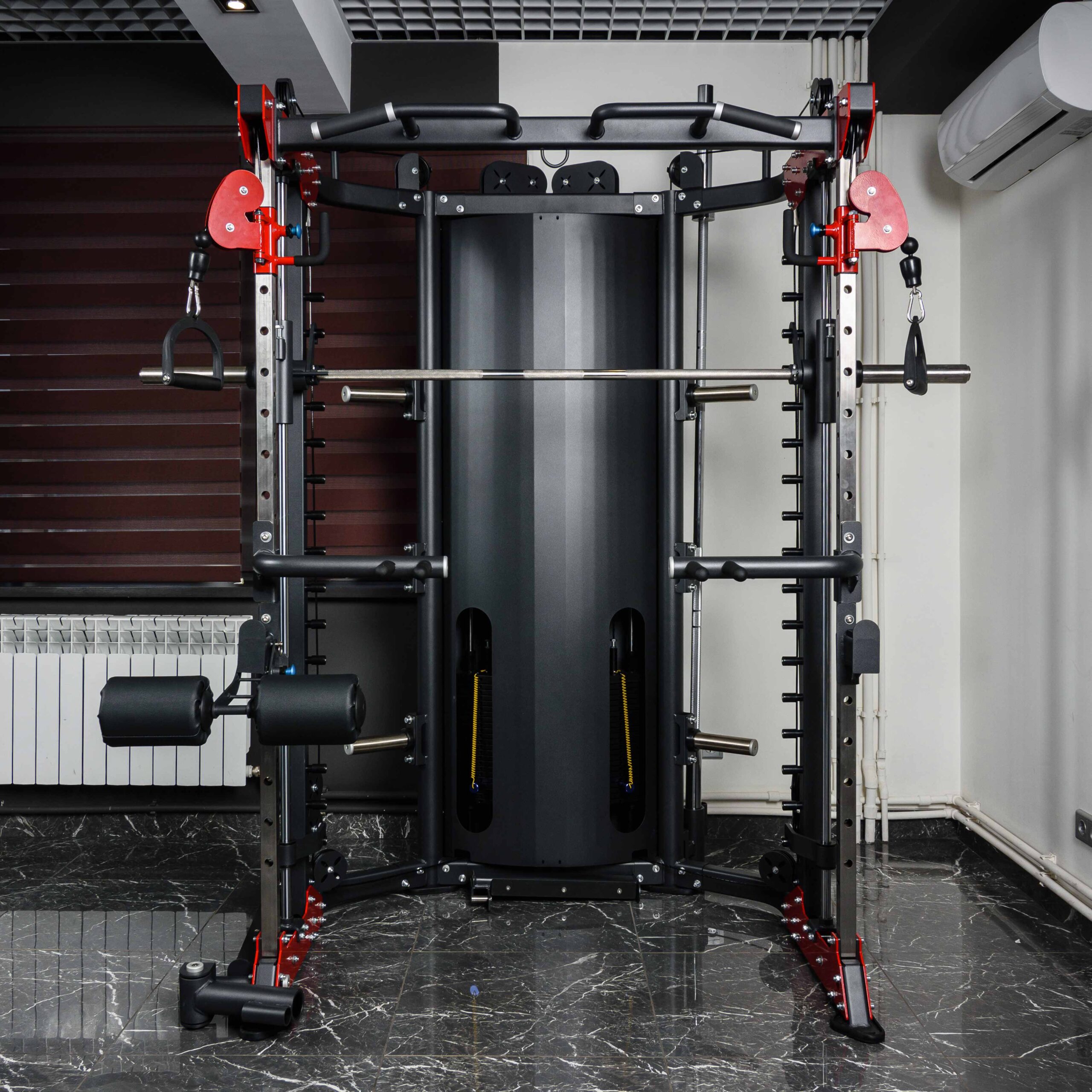 Высота грифа на машине Смита регулируется в 17 положениях по высоте благодаря упорам.