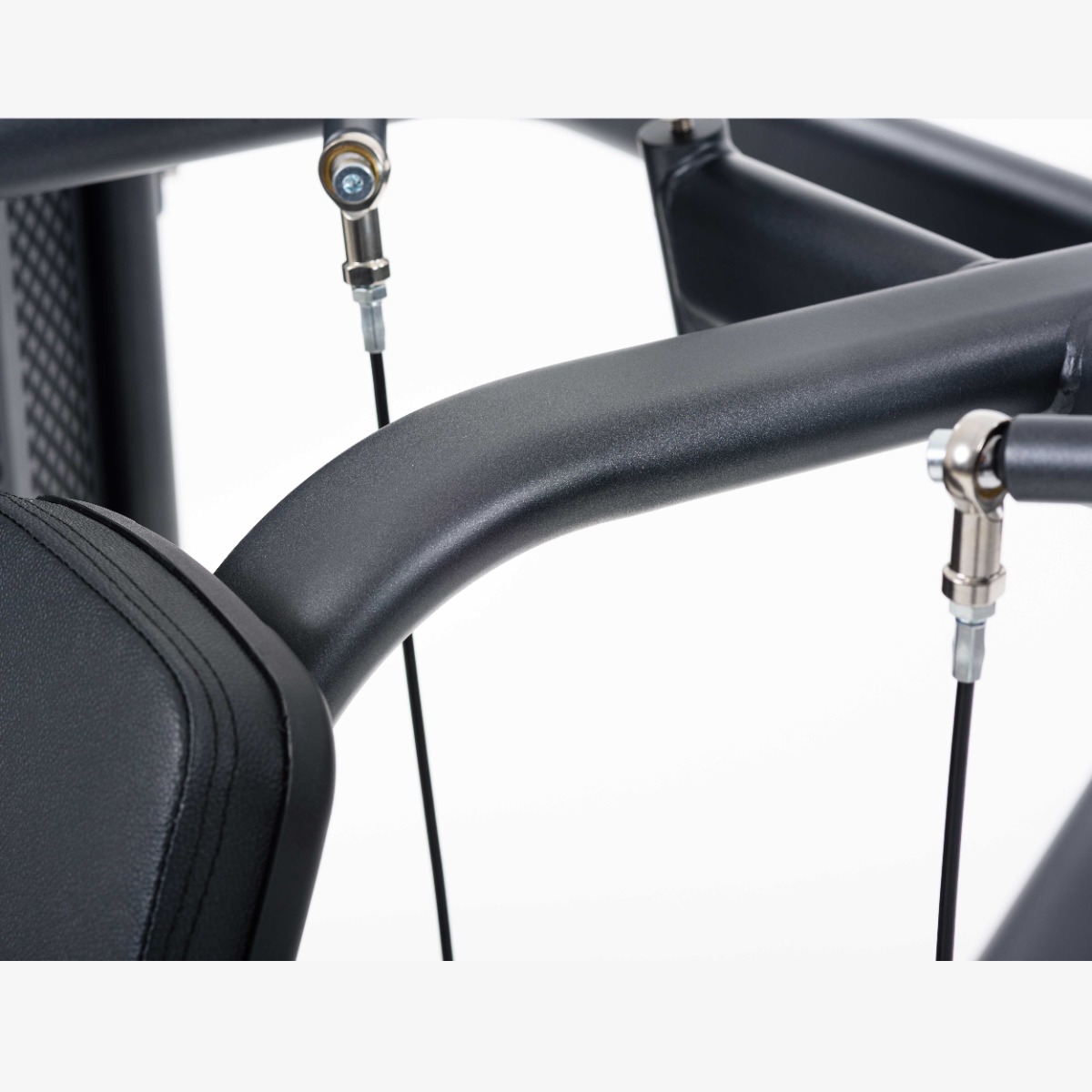 Две пары многопозиционных нескользящих рукояток выполнены из металлической трубы с резиновым неабсорбирующим влагу покрытием и декоративными заглушками-наконечниками, зафиксированными болтом.