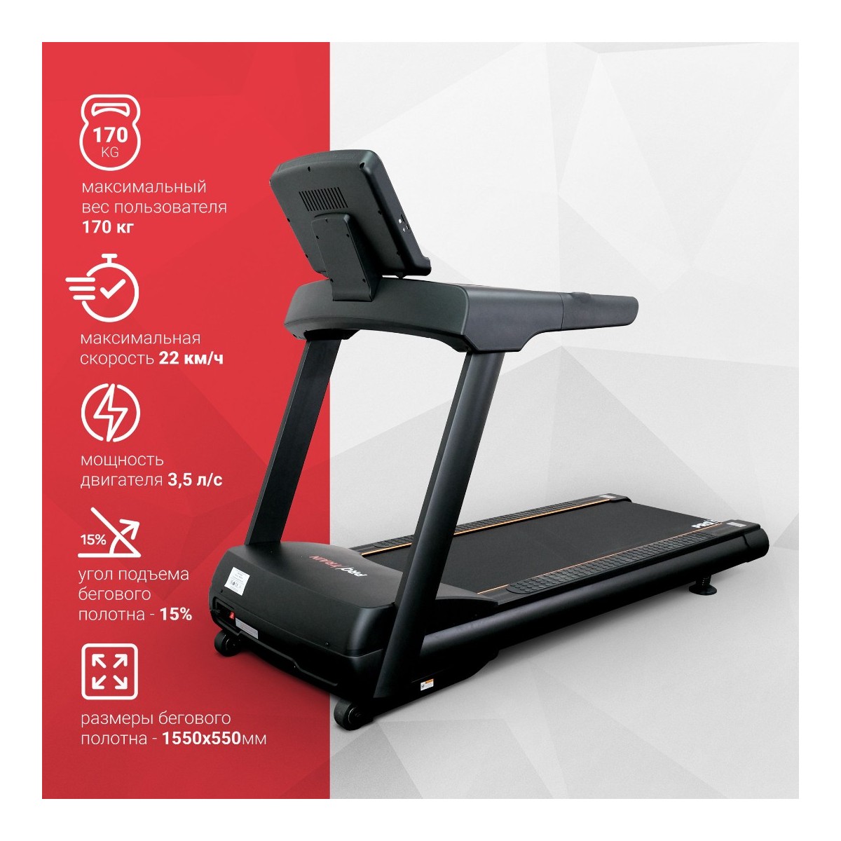 Беговая дорожка Protrain K655A-A с мощным двигателем (3.5 лошадиных сил) позволяет пользователям разгоняться до 22 км/ч. Большое беговое полотно толщиной 2.8 мм для снижения степени износа и длительной эксплуатации.Область применения: профессиональная;Мощность двигателя: 3.5 л.с.;Максимальный вес пользователя: 170 кг;Длина полотна: 155 см;Ширина полотна: 55 см;Скорость: 22 км/ч; Угол наклона: 15%; Консоль/дисплей: LED-дисплей;Программы и функции: 18 предустановленных программ;Размеры товара в сборе: 230 х 96 х 152 см.