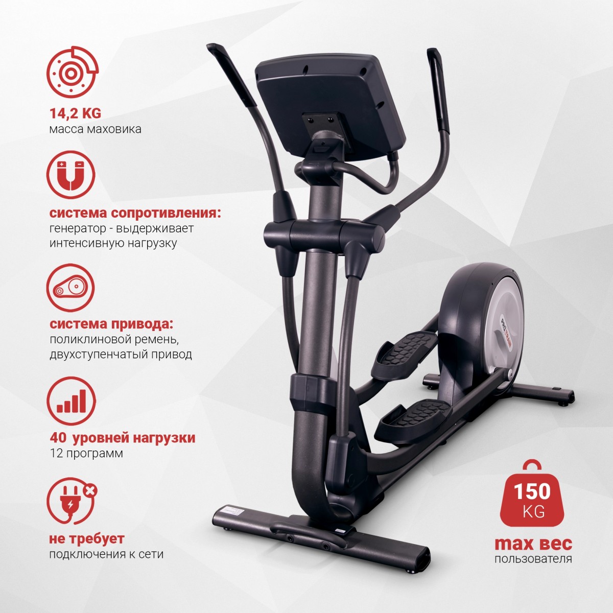 Самогенерирующий механизм не требует подключения к сети. Большие педали, покрытые нескользящим материалом, позволяют комфортно тренироваться пользователям весом до 150 кг.Область применения: профессиональная;; Длина шага: 48 см, не регулируется;Количество уровней нагрузки: 40;Максимальный вес пользователя: 150 кг; Консоль/дисплей: LCD-дисплей; Размеры товара в сборе: