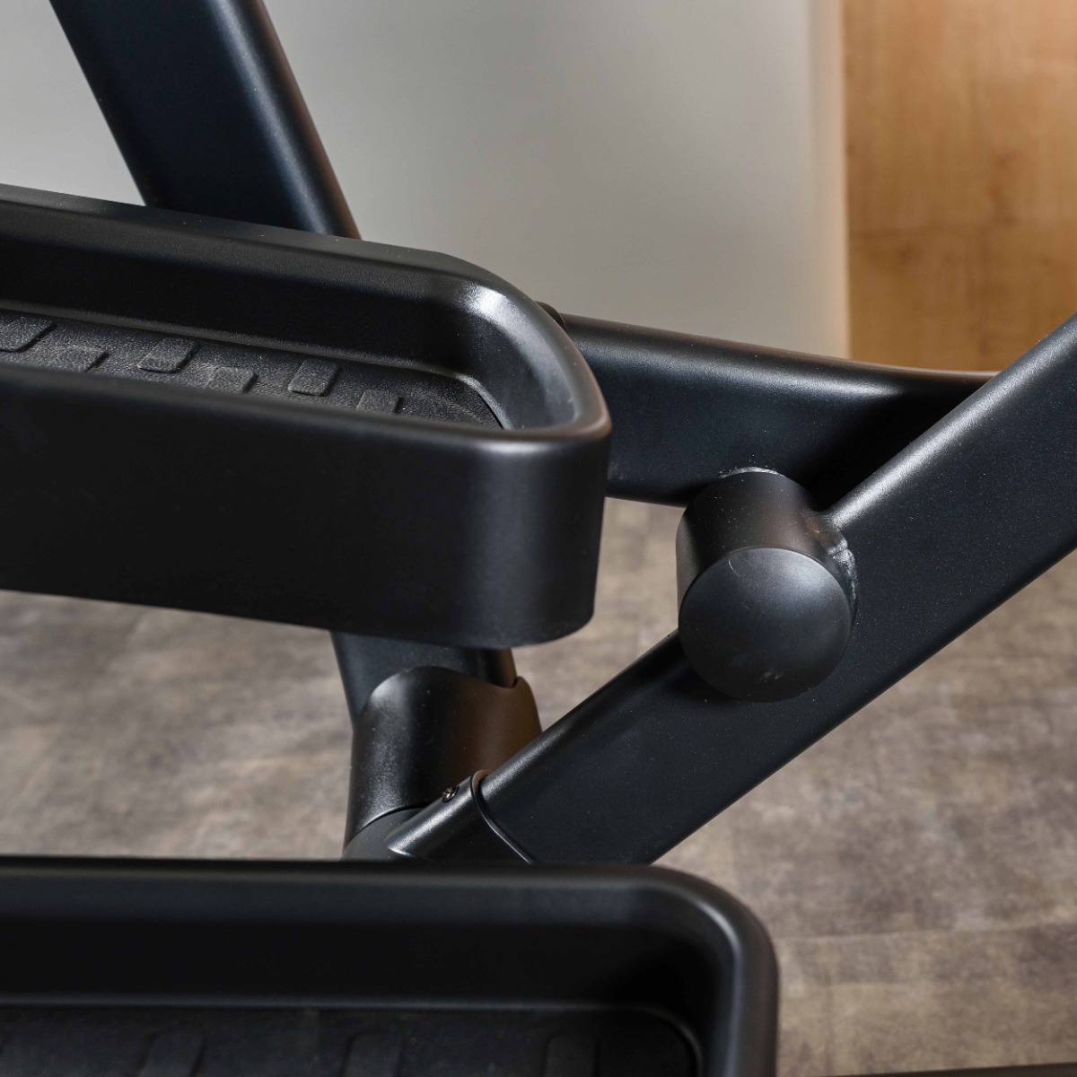 Подножка для удобного подхода к тренажеру и безопасного старта / завершения упражнения выполнена из прочного пластика.