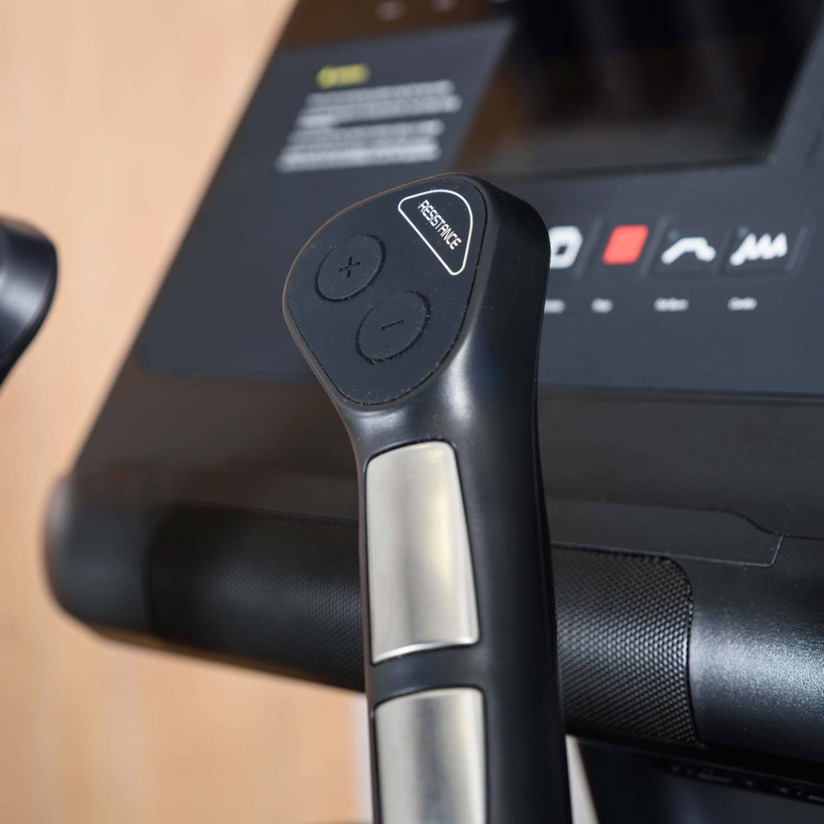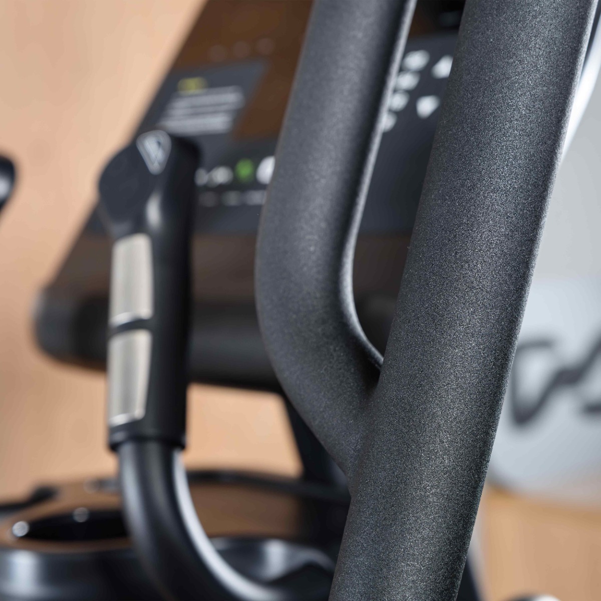 Две пары рукояток: динамичные с покрытием plasti dip и разным хватом и статичные с датчиками измерения частоты сердечных сокращений и клавишами быстрого доступа к увеличению или снижению уровня нагрузки.
