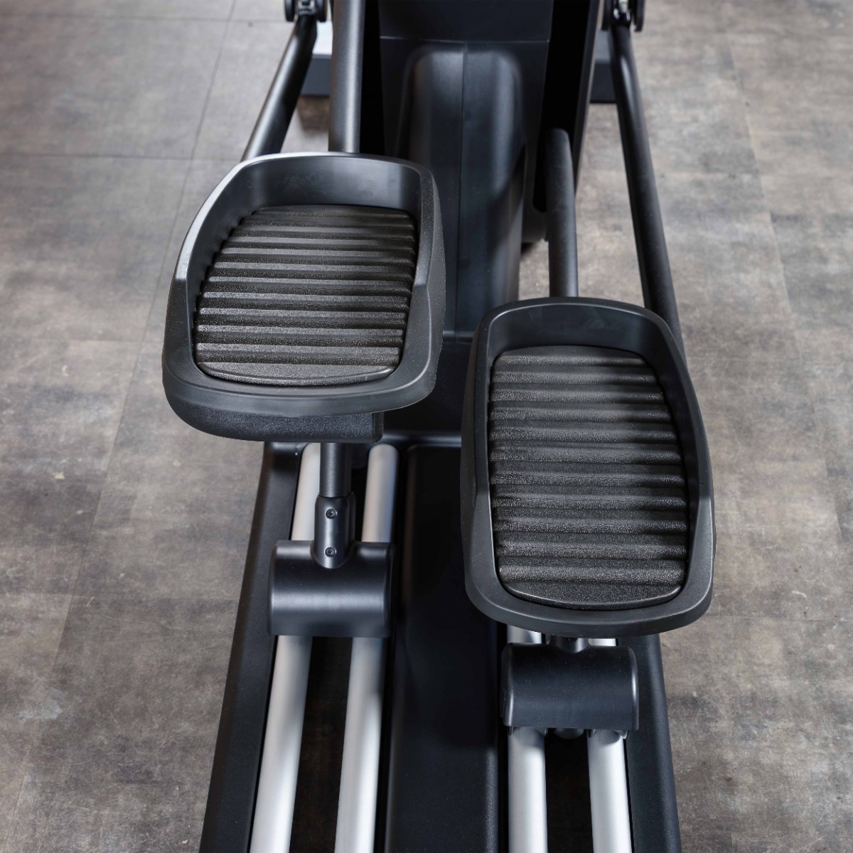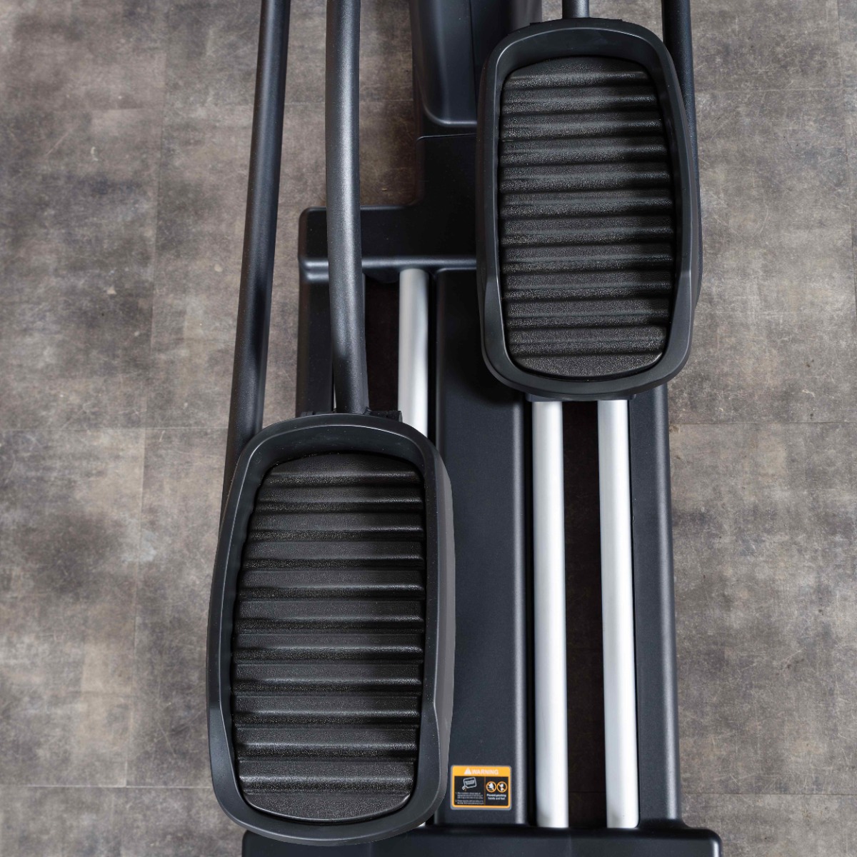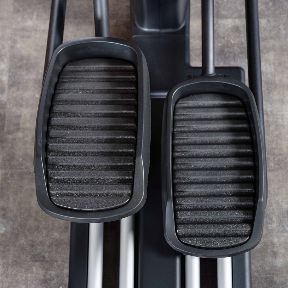 Полноразмерные педали тренажера длиной 370 мм, шириной 185 мм оснащена рифлёными амортизирующими накладками из ЭВА для исключения соскальзывания стопы и надежной фиксации положения ног при выполнении упражнения.