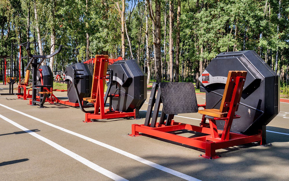 • Надежная защита элементов тренажёра от воздействия атмосферных явлений и износа