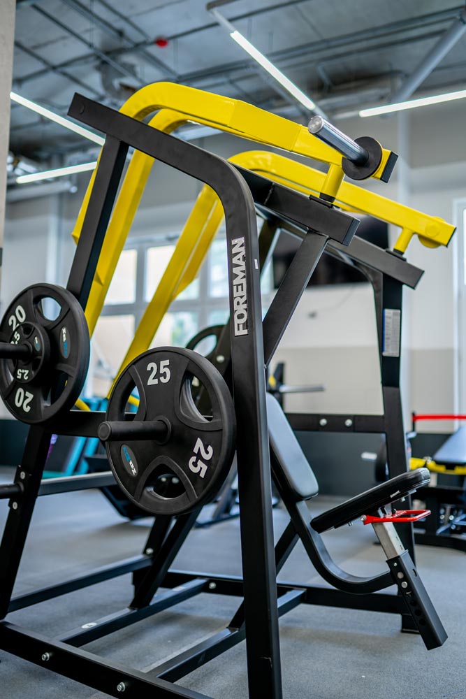 - Тренажер оснащен тремя парными держателями дисков.