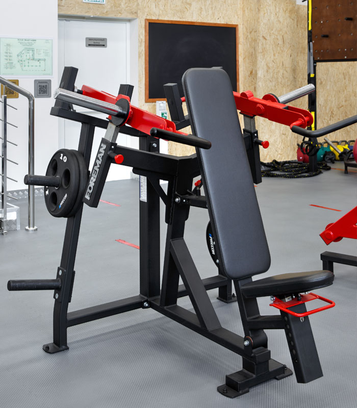 - Тренажер оснащен многопозиционной регулировкой положения сидения и наклона скамьи, а также регулируемыми ограничителями минимального угла наклона рычагов, что позволяет занять пользователю комфортное положение и безопасно выполнять упражнение.