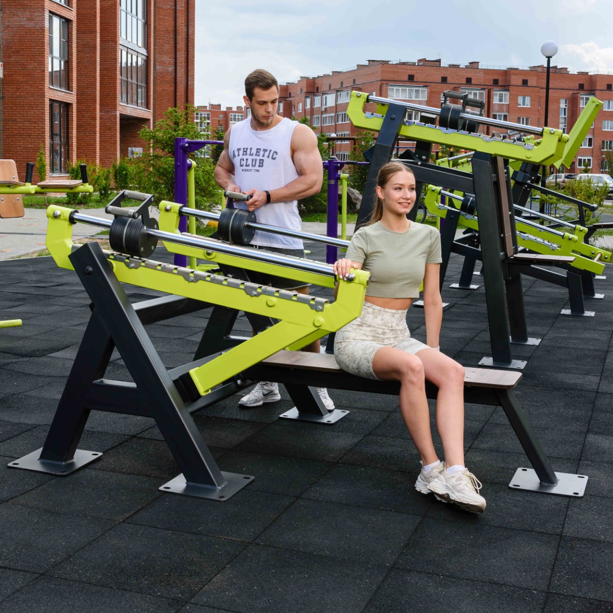 Уличный тренажер Жим лежа с переменной нагрузкой ZAVODSPORTA* предназначен для установки на уличных спортивных площадках с учетом интенсивной эксплуатации в разных климатических условиях. Тренажёры серии Force спроектированы по образцу профессионального оборудования для залов, с учётом антропометрических данных пользователей и биомеханики движений, обеспечивая комфортное и физиологичное выполнение упражнений.