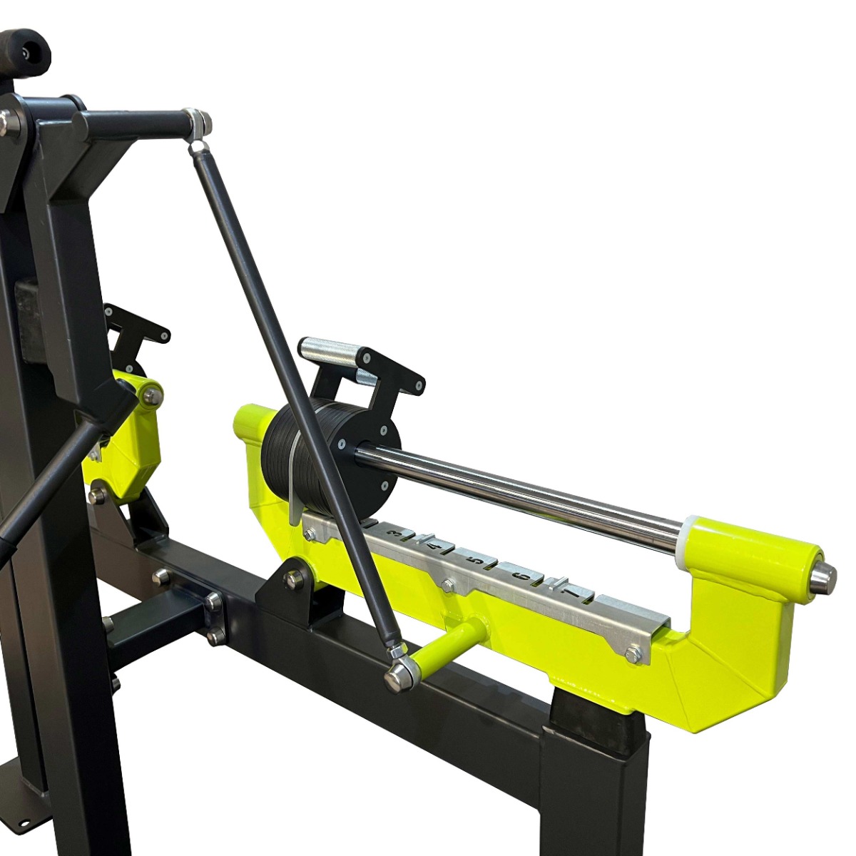 Подвижные рычаги оснащены передвижными грузовыми блоками, изготовленными из листового металла толщиной 8 мм. Перемещение грузовых блоков осуществляется с использованием подшипников при помощи парных рукоятей длиной 120 мм из металлического прутка с мягкой накаткой.