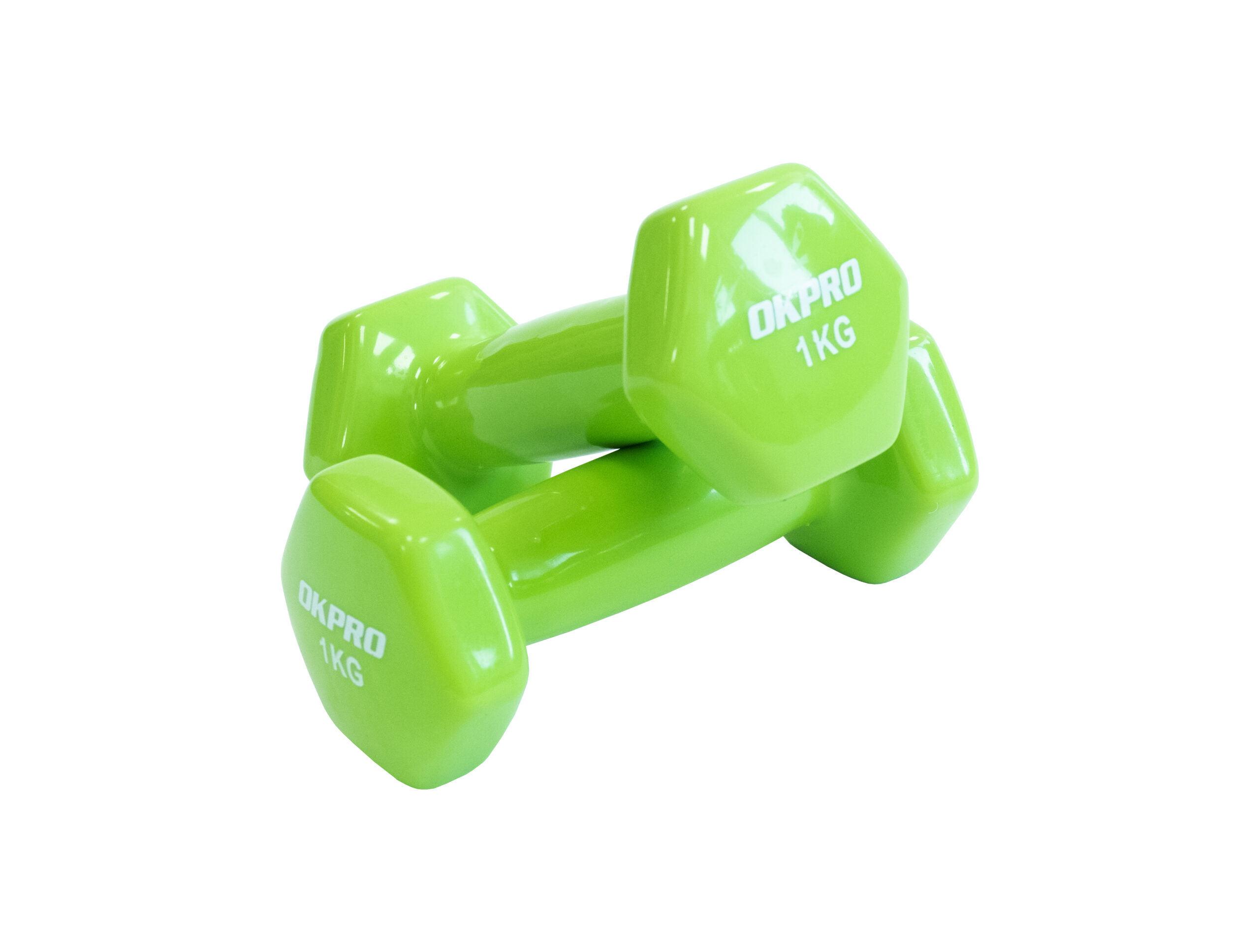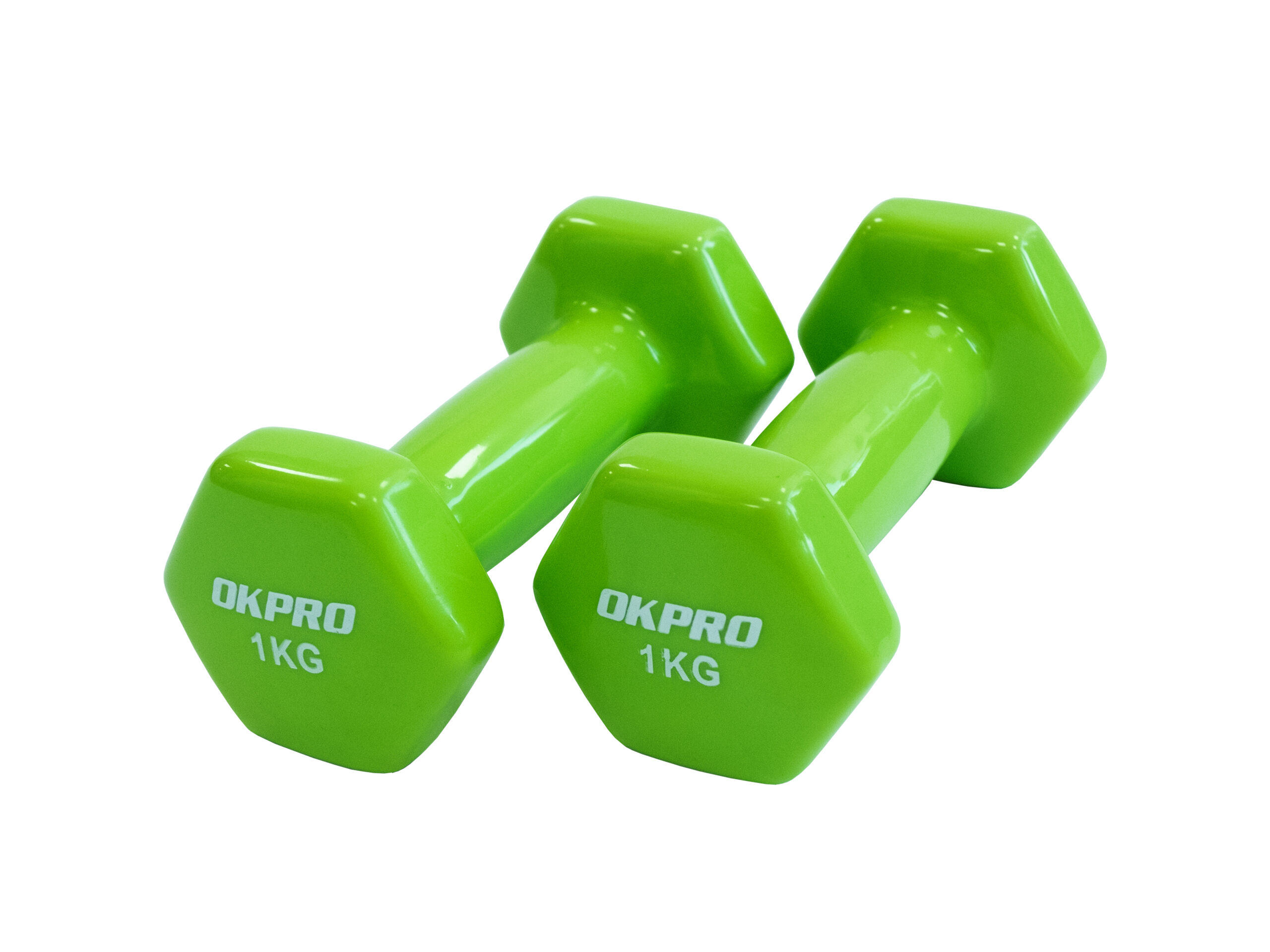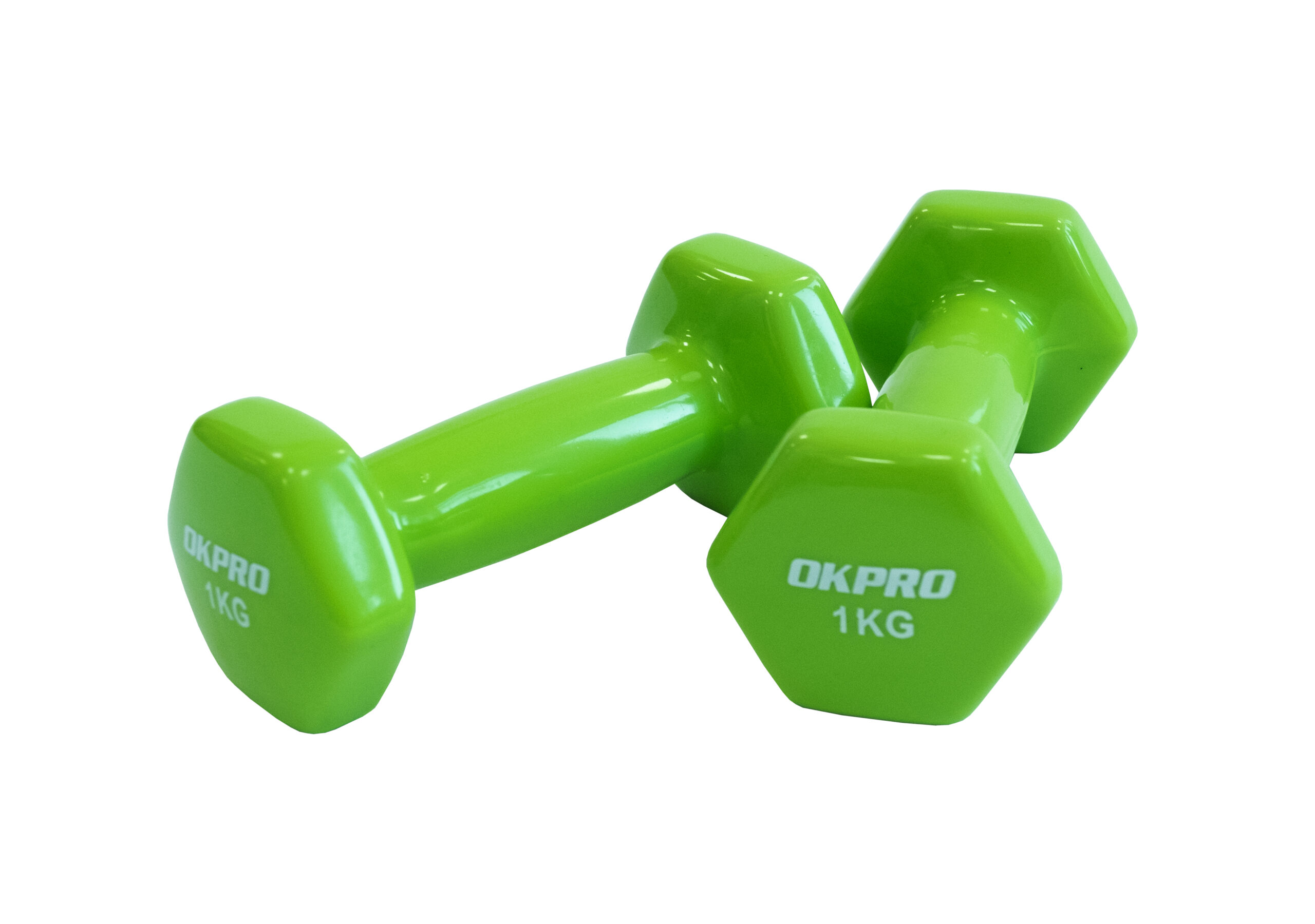 Гантель 1 кг в виниловой оболочке OKPRO для фитнес тренировок. Отлично подойдет для групповых программ и для домашнего тренинга.
