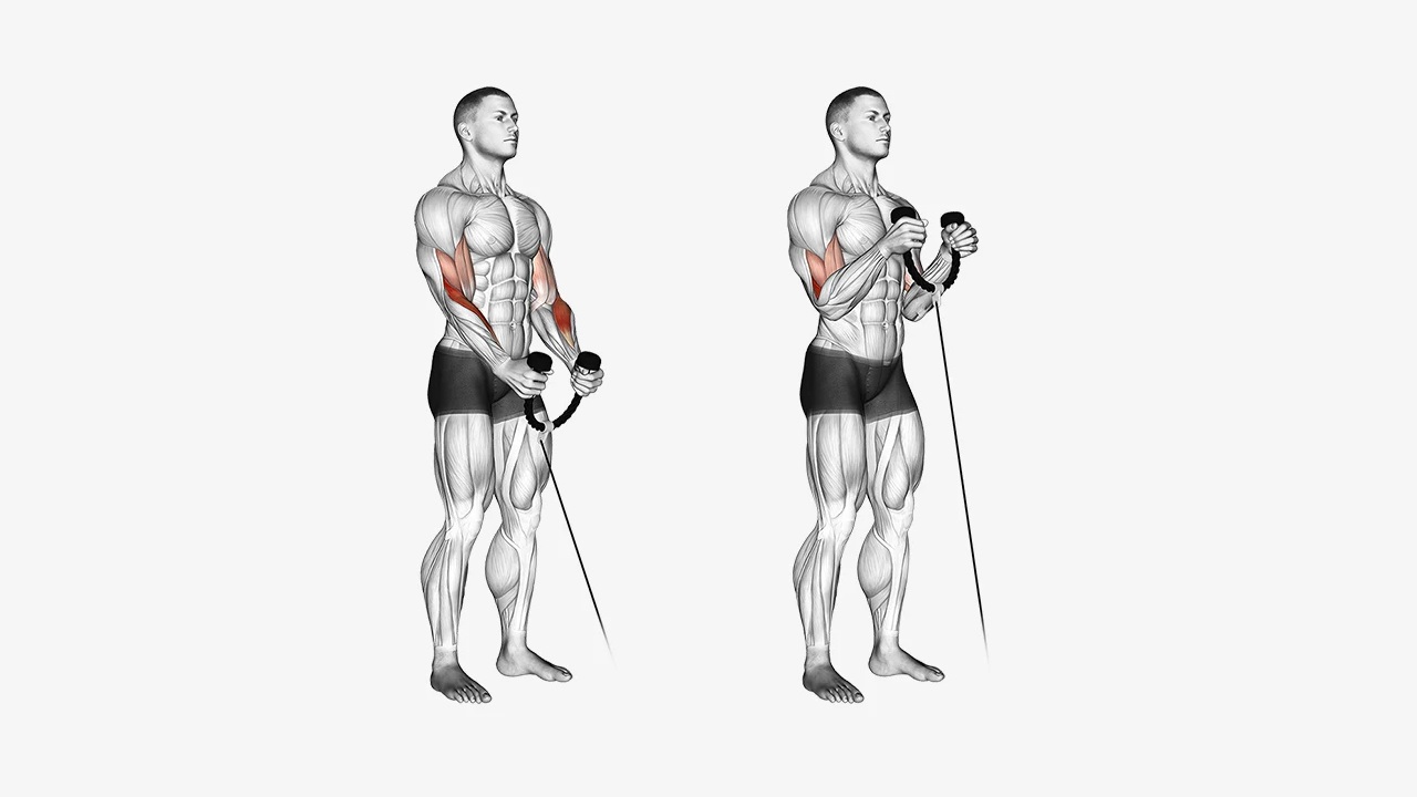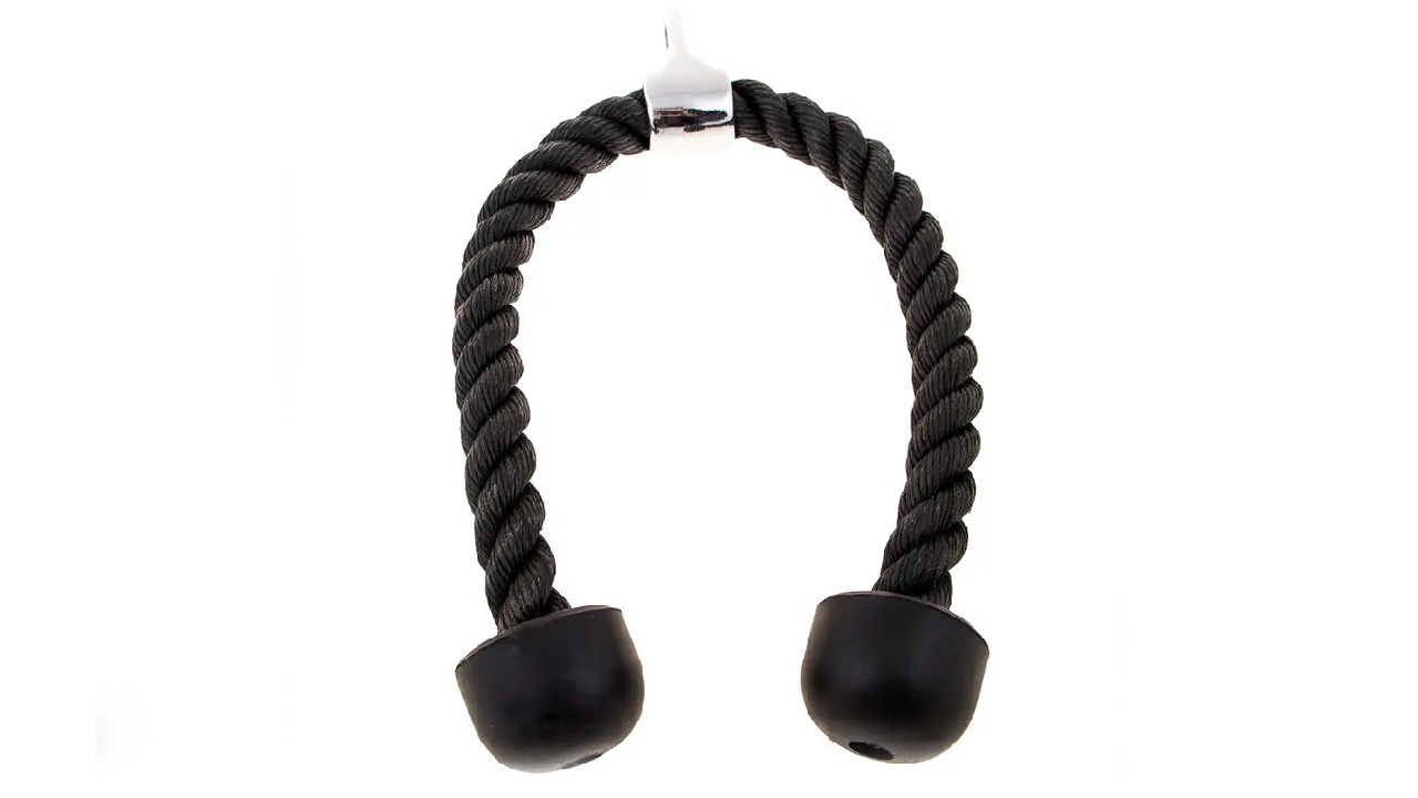 Рукоять канатная двойная — предназначена для выполнения тяговых упражнений на трицепс, бицепс, пресс, скручивания на тросовых тренажерах.