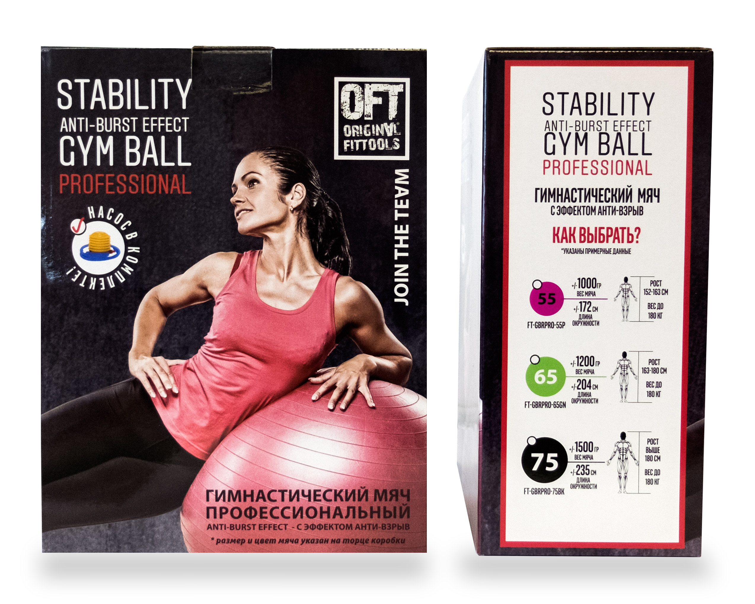 Гимнастический мяч 75 см для коммерческого использования черный с насосом
