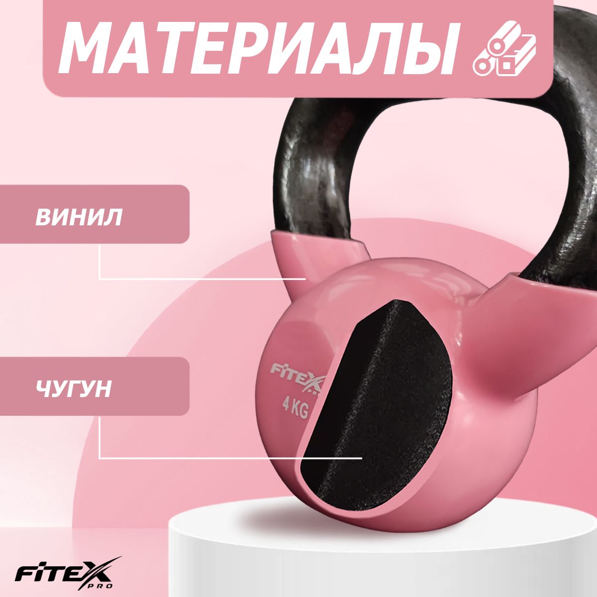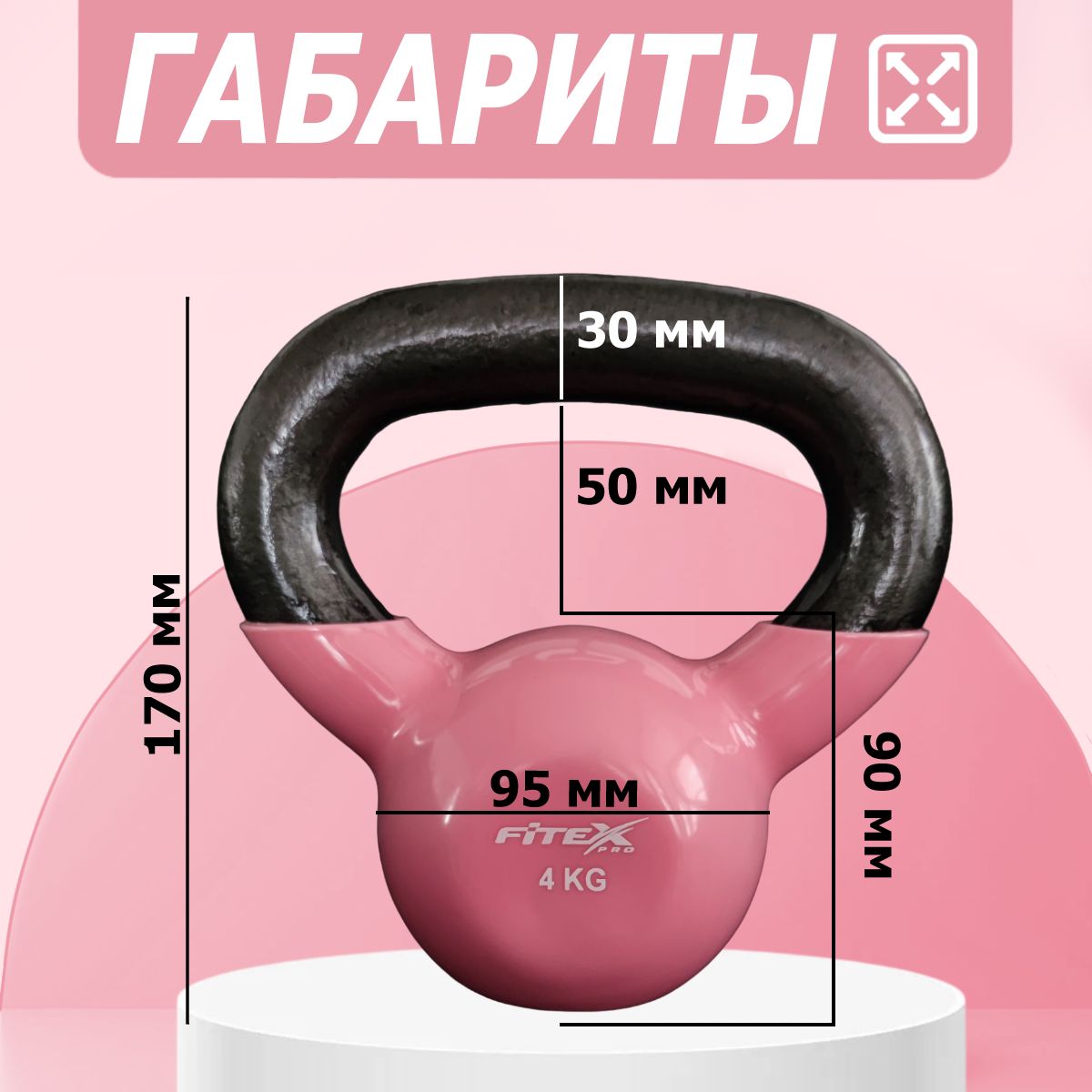 Гиря FITEX PRO сделана из чугуна и имеет плотное виниловое покрытие, которое не окрашивает стены и пол, снизит шум и убережет кожу рук от раздражения.