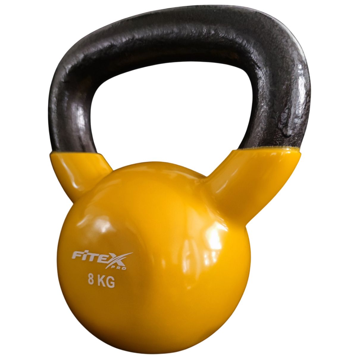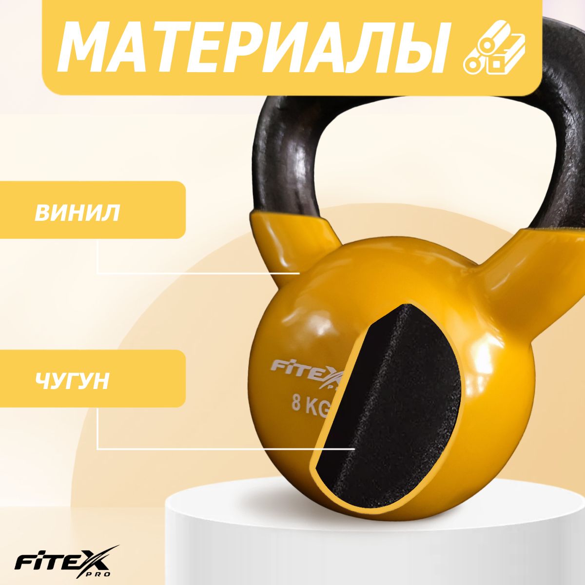 Гиря FITEX PRO сделана из чугуна и имеет плотное виниловое покрытие, которое не окрашивает стены и пол, снизит шум и убережет кожу рук от раздражения.