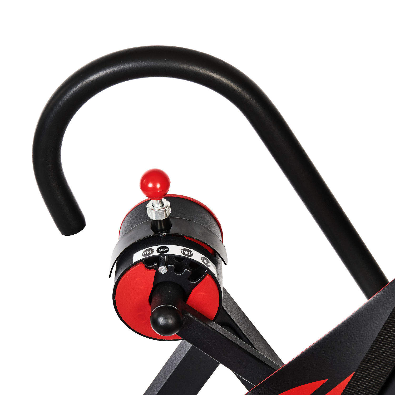 Рукоятка регулировки угла наклона фиксирует крайнее положение наклона тела в диапазоне от 90 градусов (горизонтальное положение с небольшим отклонением) до 180 (головой вертикально вниз) с промежуточными положениями 120 и 150 градусов.