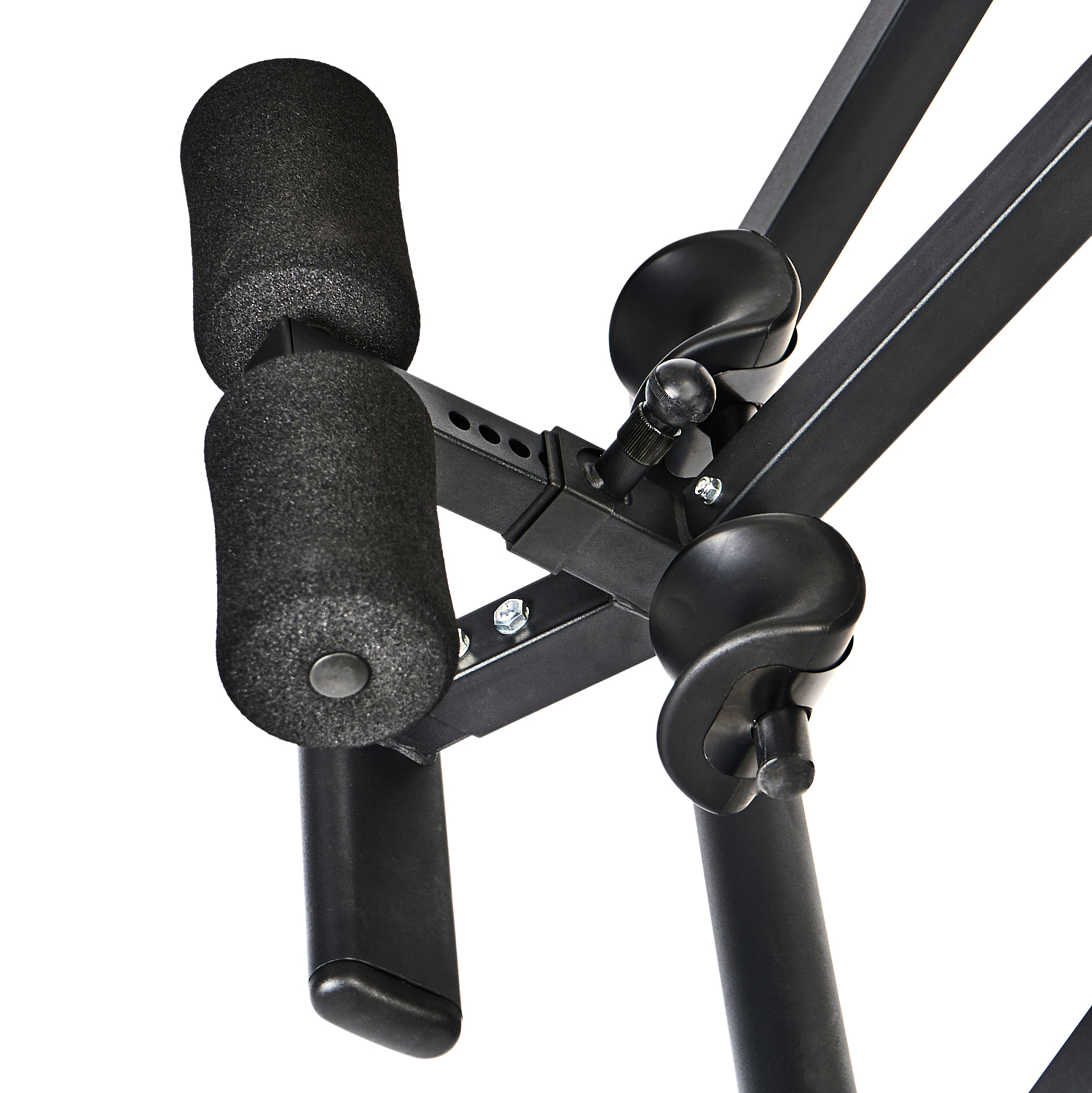 Рама стола изготовлена из высокопрочной легированной стали и позволяет тренироваться пользователям весом до 150 кг. Конструкция стола разработана совместно с медицинскими специалистами, и как результат, стол точно сбалансирован, создает бесшумный поворот без рывков и надежную фиксацию в перевернутом положении.