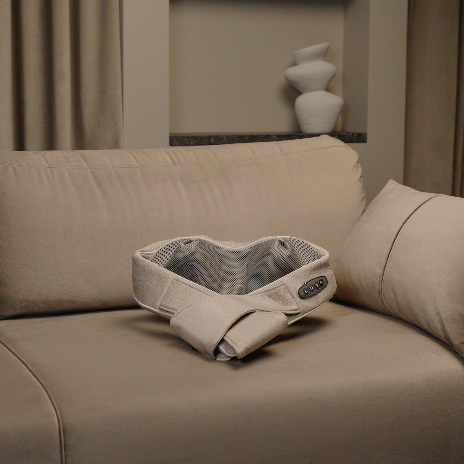 Дополнительная функция — прогрев. Он помогает быстрее расслабит мышцы и продлевает эффект от массажа.