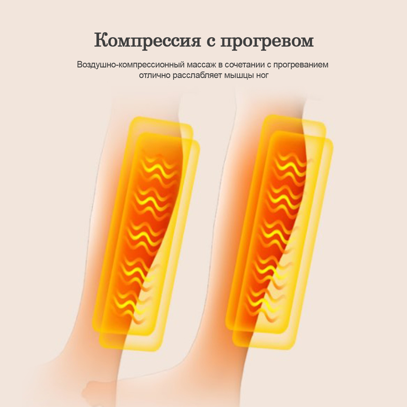В области бедер есть уникальные подушки, которые необходимо обернуть вокруг бедер для компрессионного воздействия. Подушки отлично снимают отечность и усталость, особенно у людей с сидячим образом жизни. В области ягодиц предусмотрен вибрационный и воздушно-компрессионный массаж.