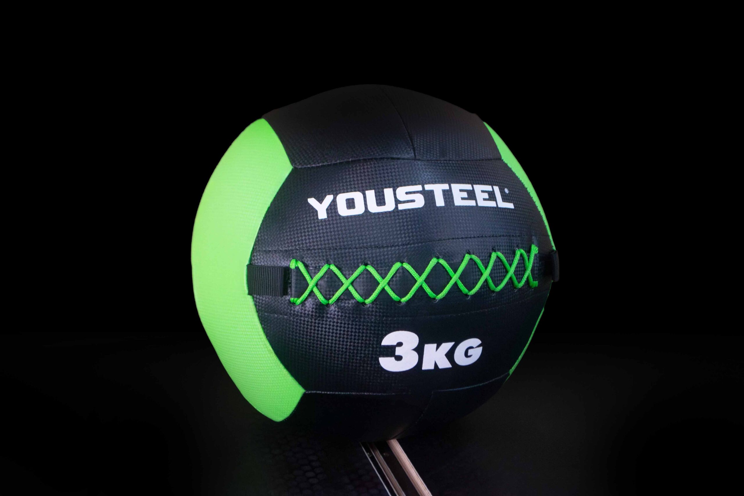 Медбол представляет собой утяжеленный мяч, диаметром 355мм и весом 3кг. Оболочка мяча выполнена из износостойкого ПВХ, которое обеспечивает оптимальное сцепления с ладонями занимающихся и предотвращает выскальзывание из рук, даже если вы вспотели. Для простоты ориентации каждый снаряд имеет цифровое обозначение веса и цветную вставку. Каждый шов прошивается нейлоновой нитью, что обеспечивает повышенную надёжность. Уникальность наших мячей в том, что мы используем систему «скорлупы» внутри. Под оболочкой из ПВХ находится мягкий слой, который служит для предотвращения смещения центра тяжести, это происходит за счет концентрации тяжелых частиц набивки в самом центре ядра «скорлупы» мяча.