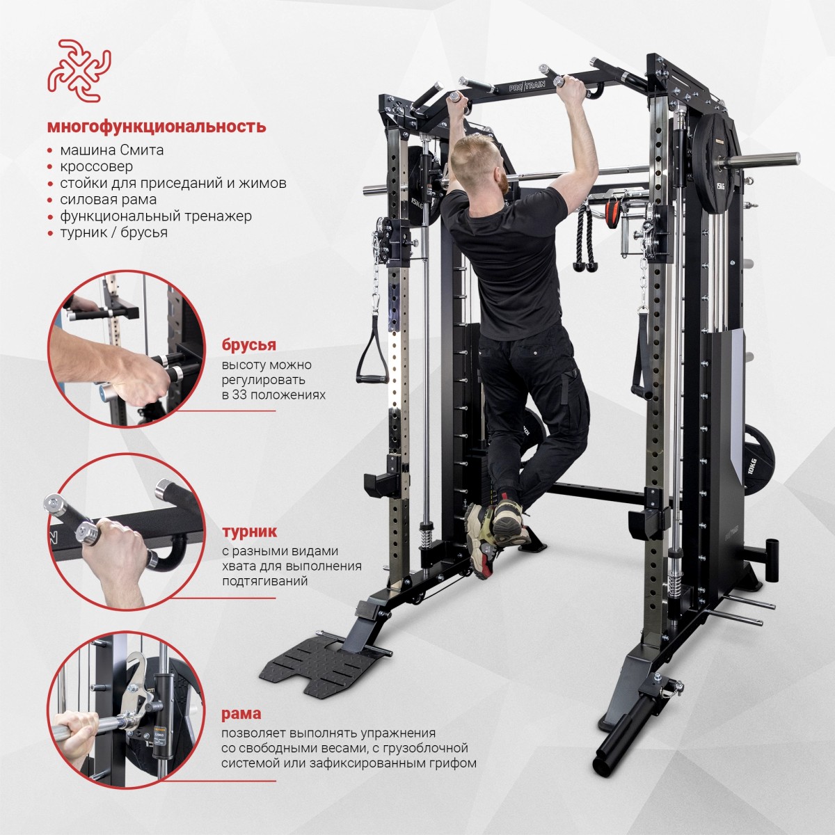 Область применения: Профессиональная;Весовой стек (одна сторона): 90 кг;Размеры товара в сборе: 170 х 199 х 230 см.