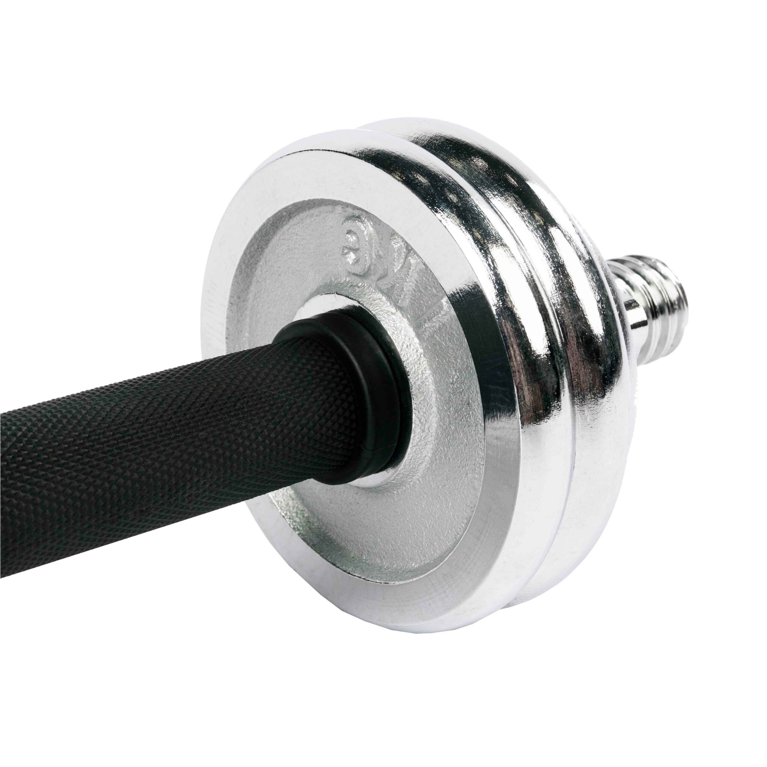 Весовые диски выполнены из металла с зеркальным хромовым покрытием.