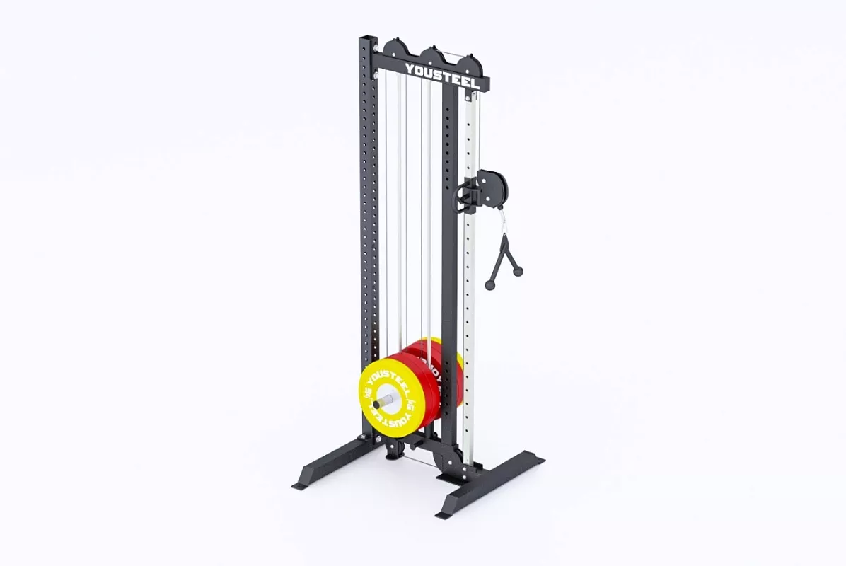 Мощная функциональная кабельная система с прочным механизмом. В тренажере предусмотрена удобная система увеличения веса с помощью встроенного кронштейна, на который с лёгкостью надеваются любые диски со стандартной втулкой 51мм. Диски не входят в комплект поставки и приобретаются отдельно, найти их можно по ССЫЛКЕ. Длина каждого кронштейна под диски составляет 275мм.
