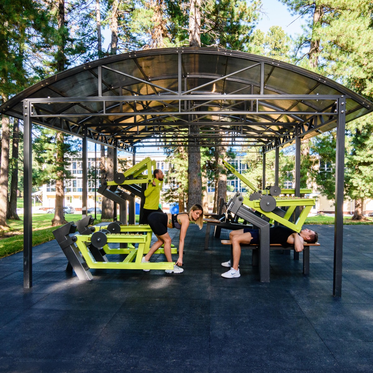 Навес для тренажеров усиленный теневой ZAVODSPORTA* предназначен для организации тренировочных пространств на уличных площадках.