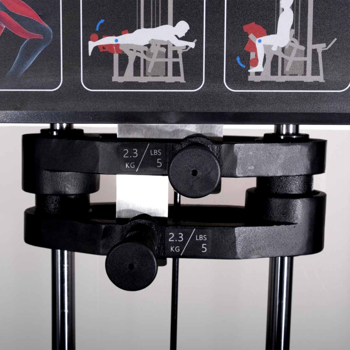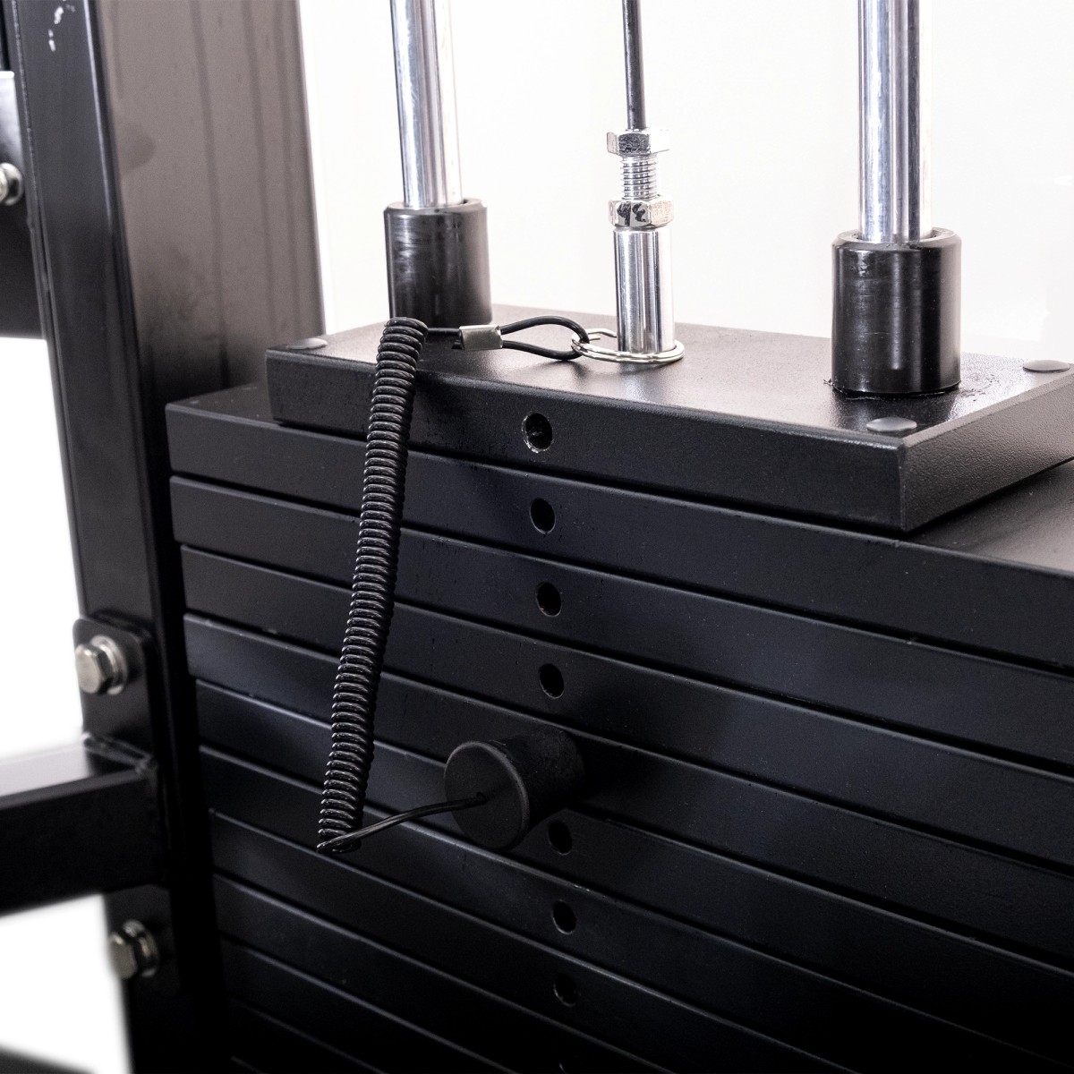 Область применения: Профессиональная; Весовой стек (одна сторона): 96 кг;Форма сечения рамы: Прямоугольная|Квадратная;Толщина стенки рамы: 3 мм;Размеры тренажера: 154 х 105 х 164 см;Вес тренажера: 268 кг.