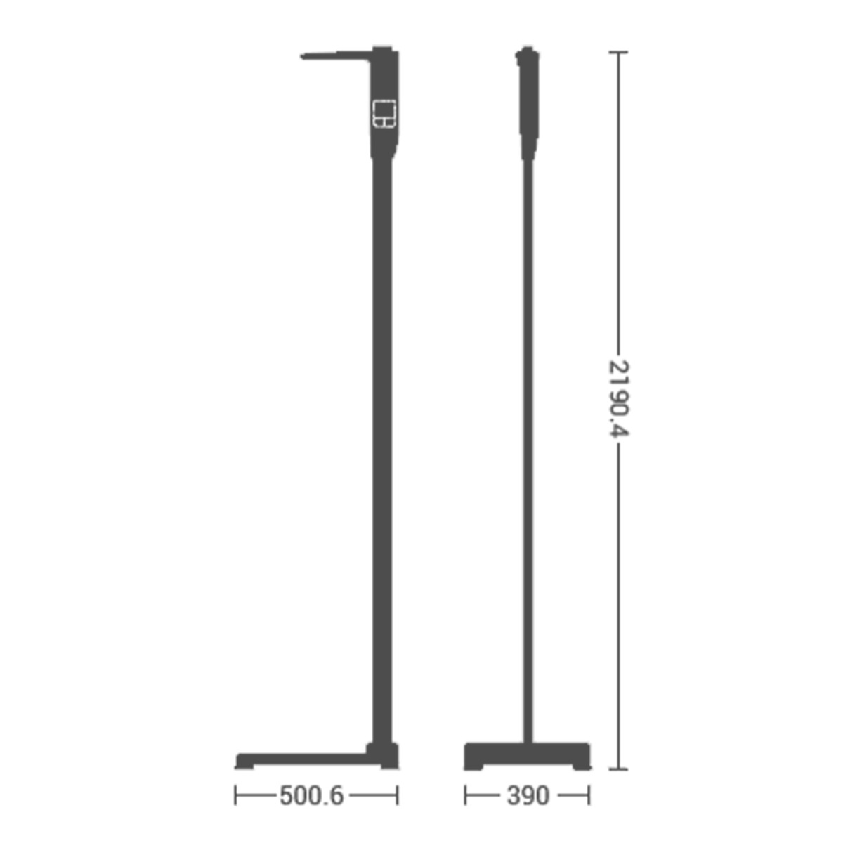 Корпус выполнен из алюминия с прочным внутренним стержнем, который обеспечивает устойчивость конструкции в вертикальном положении и повышает её сопротивляемость деформациям при интенсивном использовании.