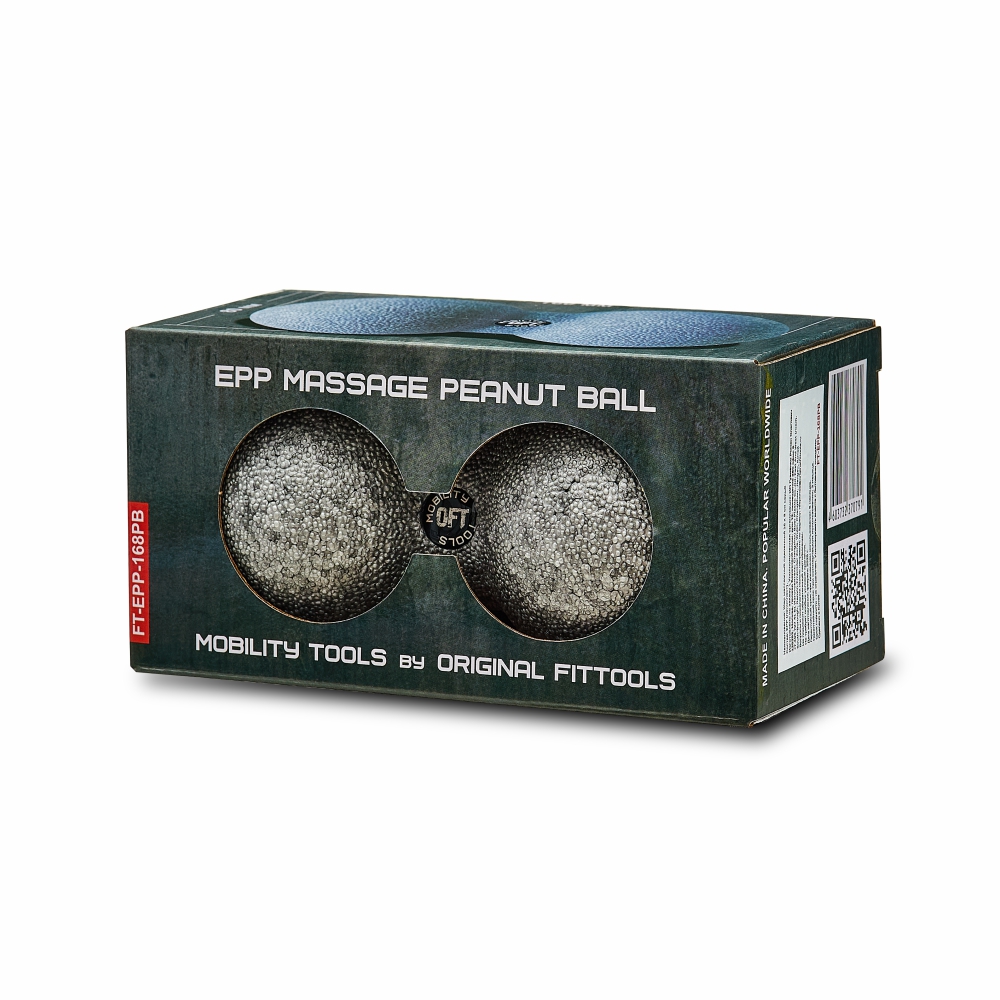 Сдвоенный массажный шар, который из-за характерной формы двух связанных между собой мячей называют «арахисом» (“peanut-ball”), изготовлен из высококачественного пенопласта (EPP). Двойной мяч OFT обладает исключительной плотностью и однородной структурой без пустот, благодаря чему шар сохраняет форму и не проминается даже при сильном надавливании.