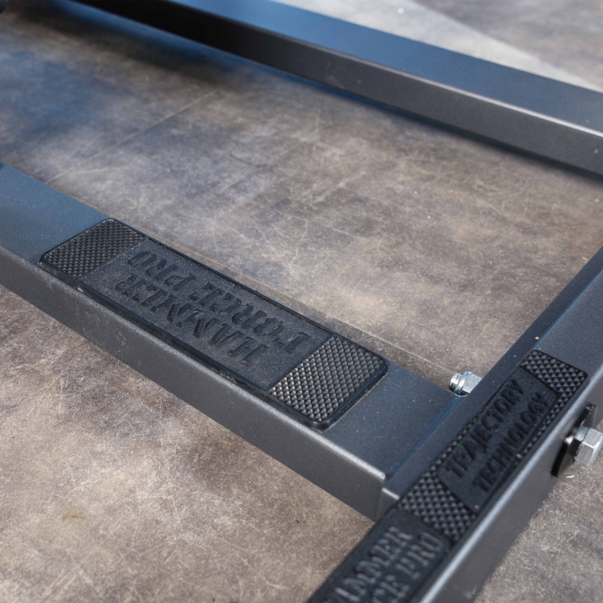 На раме закреплены рубчатые коврики для защиты тренажера от износа и спортсмена от скольжения при выполнении упражнения.