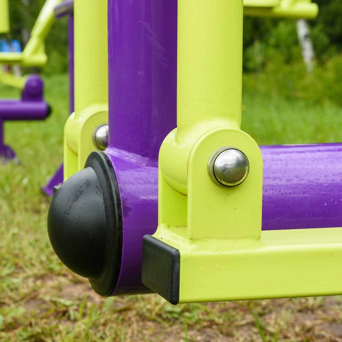 Механизм ограничения амплитуды движения с фиксированным углом хода 45° предотвращает чрезмерное отклонение рабочих рычагов, исключая возможность травмирования пользователя и снижая ударные нагрузки на конструкцию. Дополнительно выполняет функцию антивандальной защиты, исключая контакт подвижных элементов между собой.