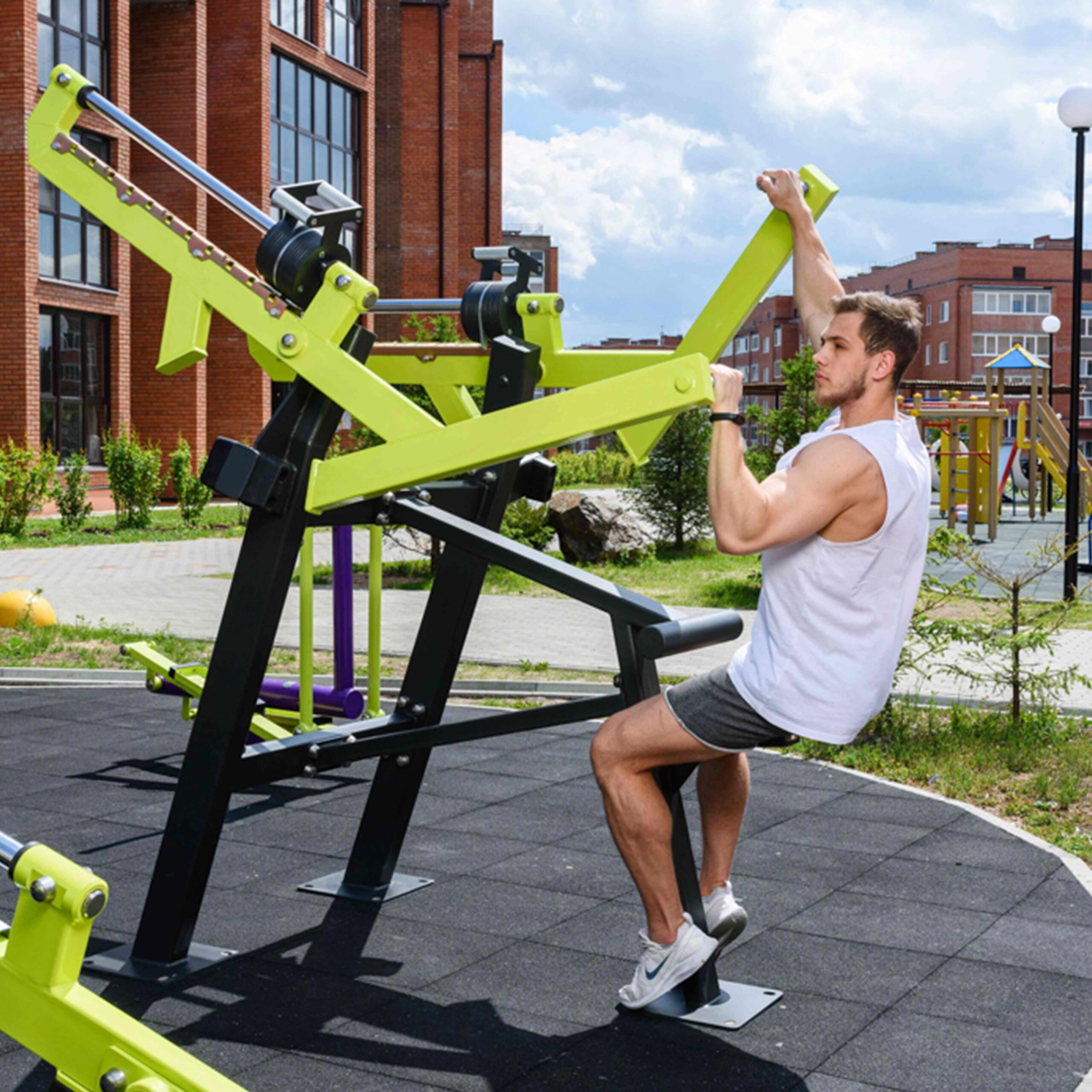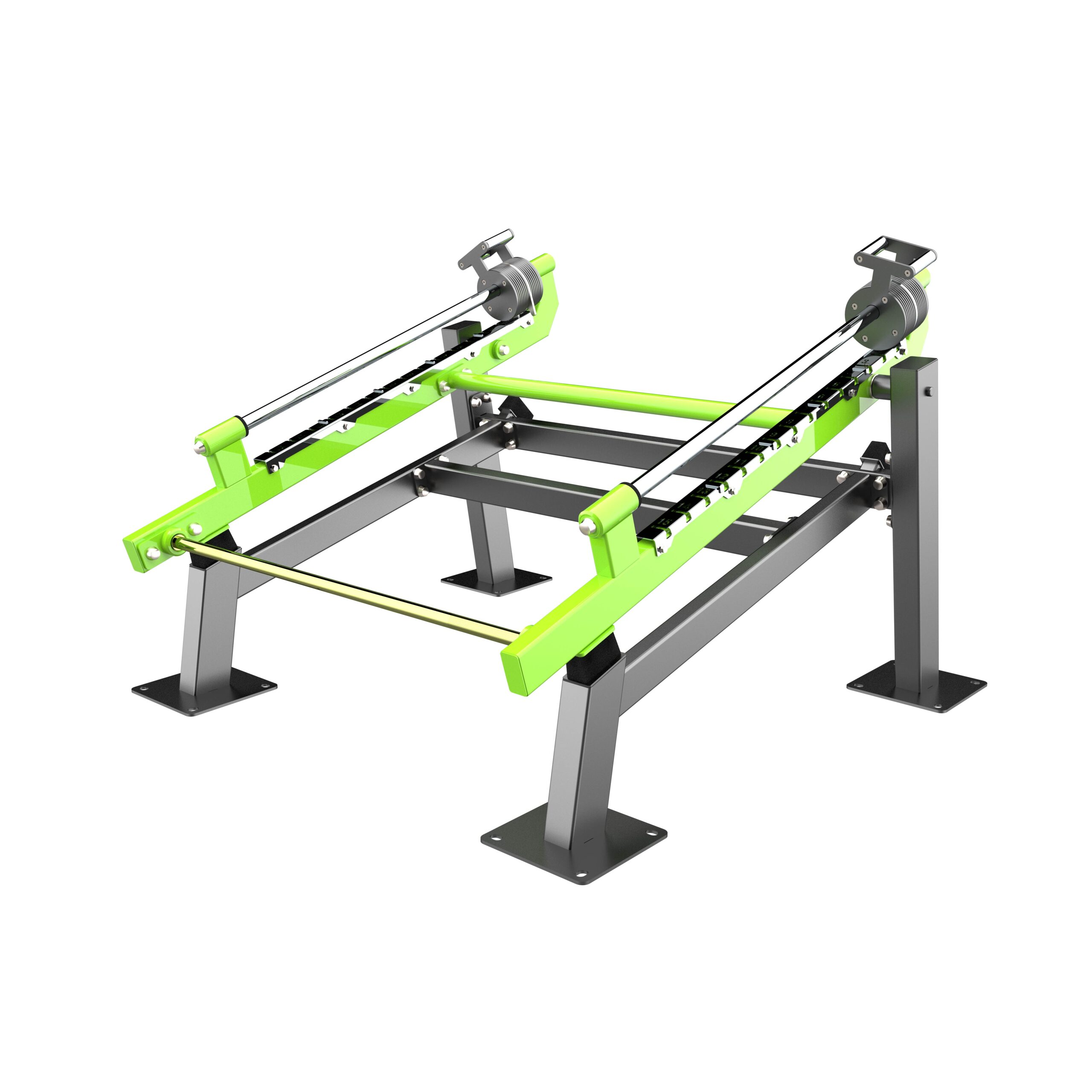 Механизм ограничения амплитуды движения с фиксированным углом хода предотвращает чрезмерное отклонение рабочих рычагов, исключая возможность травмирования пользователя и снижая ударные нагрузки на конструкцию. Дополнительно выполняет функцию антивандальной защиты, исключая контакт подвижных элементов между собой.