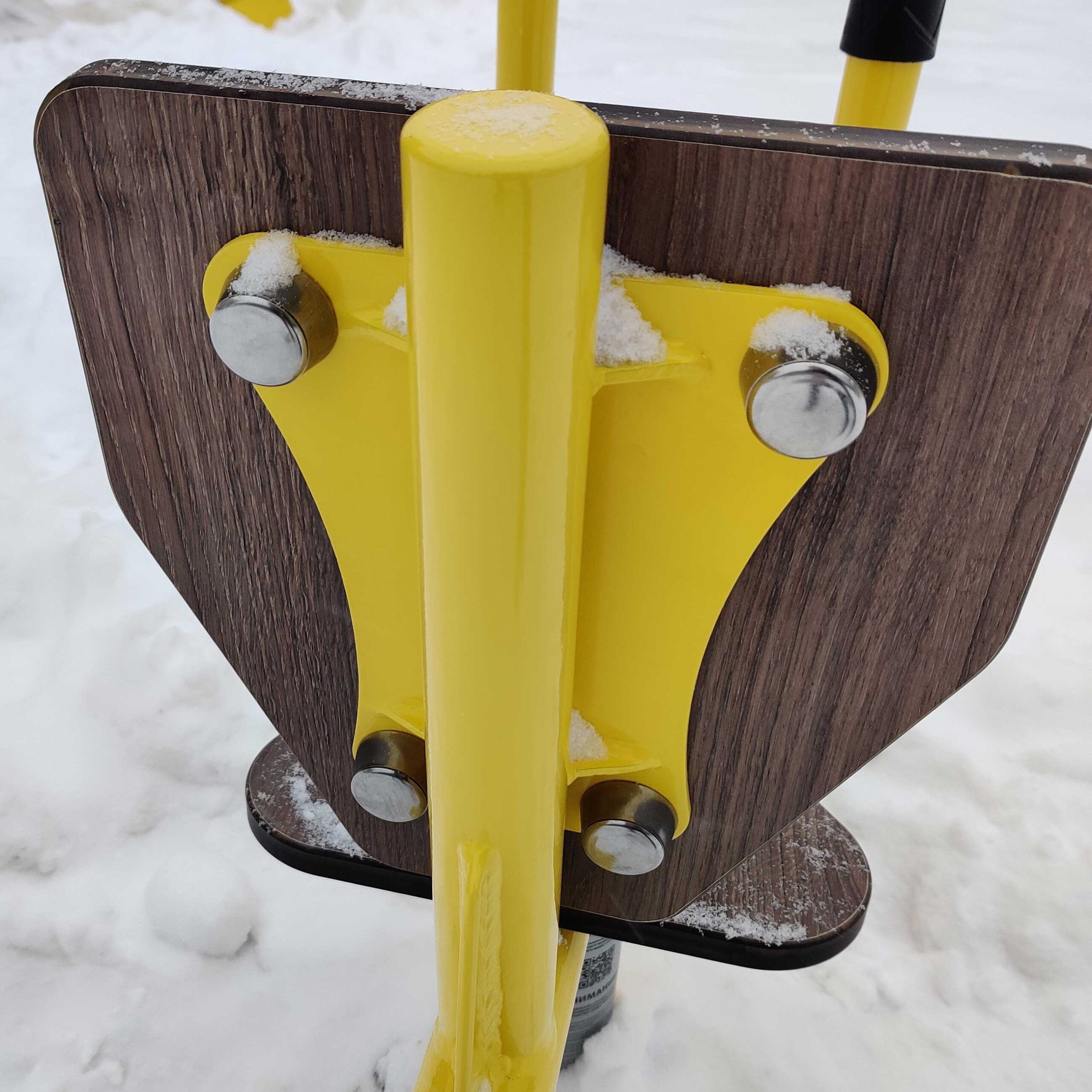 Оборудование состоит из опорного столба, сиденья со спинкой, рычага с рукоятями для управления ковшом и закладной. Закладная монтируется в грунт и заливается бетоном. Опорный столб крепится к закладной за счет фланцевого соединения и отсыпается песчано-гравийной смесью до уровня площадки. Фланцевое крепление позволяет надёжно смонтировать оборудование и беспрепятственно демонтировать при необходимости обслуживания. Монтажные схемы прилагаются к комплекту поставки.