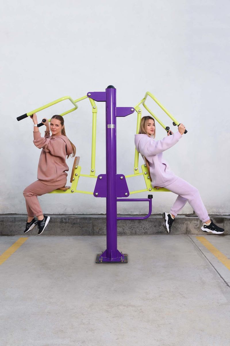 Уличный тренажер Тяга сверху – Жим от груди ZAVODSPORTA* предназначен для установки на уличных спортивных площадках с учетом интенсивной эксплуатации в разных климатических условиях.