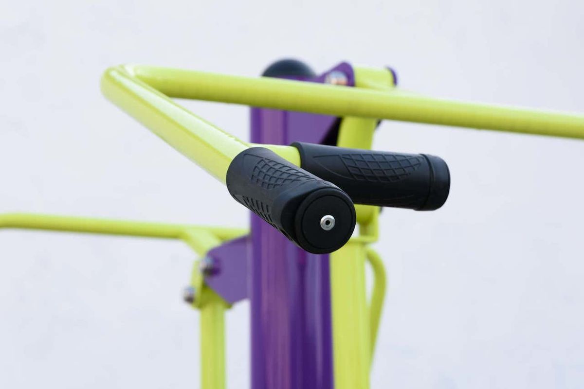 Две пары рукоятей у каждой стороны тренажера для вариативности хвата изготовлены из трубы диаметром 33 мм с толщиной стенки 3,2 мм.